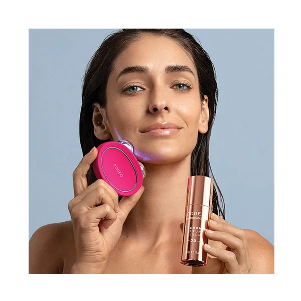 • Нанесите тонкий слой проводящей сыворотки FOREO. для безопасного и эффективного лечения.