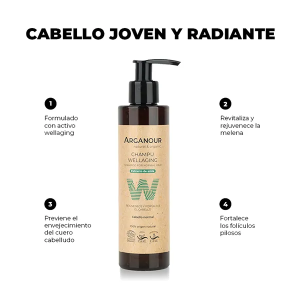 Антивозрастной шампунь Champú Wellaging Arganour, 200 ml