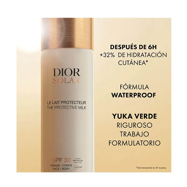 Откройте для себя солнцезащитное молочко Dior Solar Protective Milk для лица и тела SPF 30 — солнцезащитное молочко с высокой степенью защиты, которое легко защищает тело и лицо. Легкая и освежающая молочная текстура солнцезащитного молочка для лица и тела Dior Solar Protective Milk SPF 30 дарит коже приятные ощущения, не оставляя жирного блеска. Практичный формат спрея позволяет равномерно распределить молочко по коже. После нанесения кожа мягкая. Защищен от лучей UVA/UVB и внешних воздействий. Увлажненная и ароматная кожа приобретает возвышенное атласное сияние. Солнечное защитное молочко для лица и тела Dior SPF 30 позволяет добиться более красивого и равномерного загара.