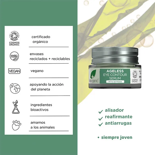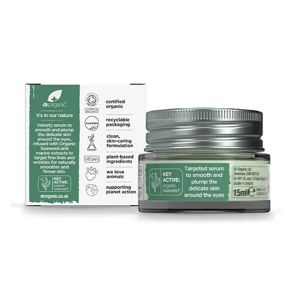 Основные преимущества укрепляющей сыворотки для глаз: Разглаживание и укрепление кожи. Типы кожи: Все типы кожи. Идеально подходит для: Тонких линий и морщин. Морские водоросли — это суперпродукт, естественно богатый необходимыми для кожи витаминами и минералами, а также как смесь мощных питательных веществ, таких как аминокислоты и полисахариды. Укрепляющая сыворотка для глаз, разглаживающая и разглаживающая нежную кожу вокруг глаз. Насыщен органическими морскими водорослями и морскими экстрактами для борьбы с тонкими линиями и морщинами, делает кожу более гладкой и упругой. Протестировано дерматологически. КОСМОС ОРГАНИЧЕСКИЙ СЕРТИФИКАТ