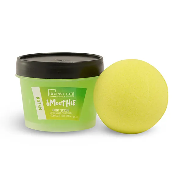 Набор для ванны с ароматом дыни, в который входят бомбочка для ванны и скраб для тела.