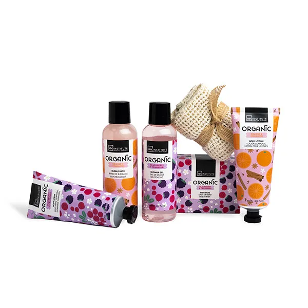 Превратите свой дом в оазис благополучия с помощью нашего полного набора Organic. Включает гель для душа, пену для ванн, лосьон для тела, скраб для тела, губку из сизаля и соли для ванн, все с пленительным ароматом апельсина, корицы, ежевики и клюквы. Побалуйте свое тело и душу в персональном спа-центре.