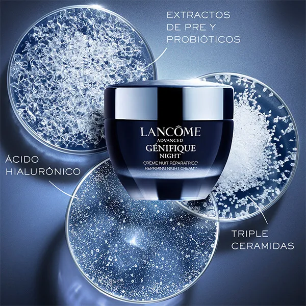 Новый ночной крем Advanced Génifique от Lancôme, теперь основанный на науке о микробиоме, для усиления регенеративной способности кожи в ночное время. Его формула содержит активные ингредиенты, необходимые для достижения интенсивного увлажнения и восстановления кожного барьера, восстанавливая его после повреждений, нанесенных в течение дня. Ночь за ночью кожа становится сильнее, заметно моложе и сияет. ПРЕИМУЩЕСТВА Мгновенно кожа становится упругой. интенсивно увлажненный и спокойный. В ночное время он помогает восстановить кожный барьер кожи и увлажняет ее, обеспечивая более защищенную кожу. Ночь за ночью кожа становится заметно моложе с блеклыми признаками старения. ИНГРЕДИЕНТЫ 7 ЭКСТРАКТОВ ПРЕ ​​И ПРОБИОТИКОВ Они обеспечивают необходимые питательные вещества для поддержания прочного и здорового кожного барьера. ТРОЙНЫЕ КЕРАМИДЫ 3 типа керамидов, которые благодаря своей укрепляющей способности защищают и укрепляют кожный барьер, замедляют появление морщин, а также так как они улучшат общую текстуру кожи. ГИАЛУРОНОВАЯ КИСЛОТА Заполняет морщины, интенсивно увлажняет и смягчает кожу. РЕЗУЛЬТАТЫ 89% чувствуют, что кожа становится пухлой гидратированный* • 84% считают, что кожа стала более упругой спокойствие* • 82% отмечают меньшее ощущение сухости* • Кожа +30% увлажнения в течение ночи** Клинически доказанные результаты по 6 параметрам молодости кожи***: • +43% мягкости • +36 % яркость • +35% твердость • +33% плотность • -20% мимических морщин • +22% однородного тона». Формула дерматологически протестирована на всех тонах и типах кожи, даже на чувствительной. *Самооценка, 82 женщины, через 1 ночь **Инструментальный тест, 24 женщины через 8 часов ***Клиническое исследование, 82 женщины после 8 недель