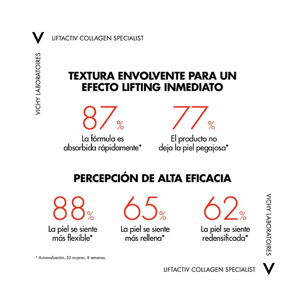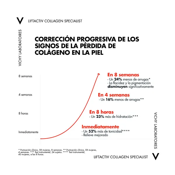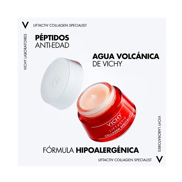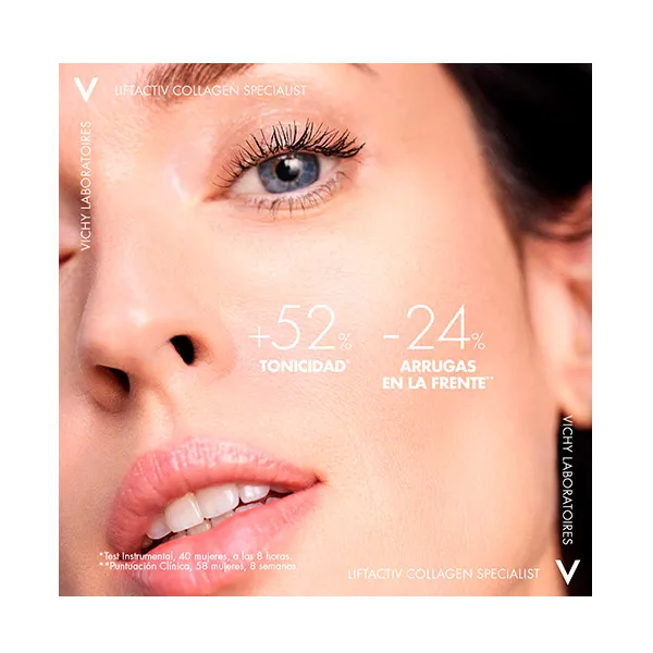 С годами в зрелой коже происходят глубокие изменения за счет атрофии эпидермиса, дермы и гиподермы. Это приводит к видимым изменениям кожи: увеличению количества и глубины морщин, дискомфорту, потере упругости и эластичности, изменению пигментации. изменение васкуляризации... и т. д. Liftactiv Collagen Specialist – это ежедневная процедура, корректирующая признаки старения, вызванные потерей коллагена в коже. Комбинация антивозрастных пептидов I и II и витамина С* образует высокоэффективную формулу витамина С с антиоксидантным и противогрибковым действием, уменьшает пигментацию и темные пятна на коже, мгновенно придавая +52% тонуса, заполняет морщины и разглаживает морщины. выравнивает тон кожи. Мгновенный и длительный эффект. Пептиды стимулируют синтез естественного коллагена кожи. Кроме того, он содержит вулканическую воду Виши вулканического происхождения, обладающую успокаивающими и увлажняющими свойствами, укрепляющими кожный барьер. Наконец, его формула гипоаллергенна, снижает риск аллергии. Эффективность клинически проверена под дерматологическим контролем, подходит даже для всех типов кожи. самые чувствительные.