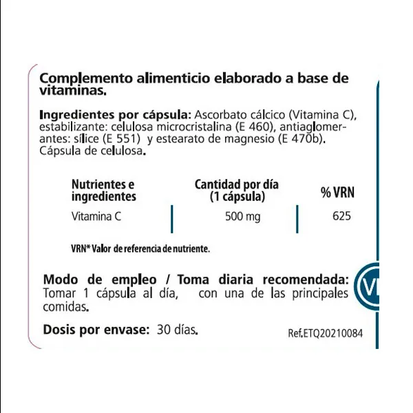 Состав на капсулу: аскорбат кальция (витамин С), стабилизатор: микрокристаллическая целлюлоза (Е 460), антислеживатель. агенты: диоксид кремния (Е 551) и стеарат магния (Е 470b).