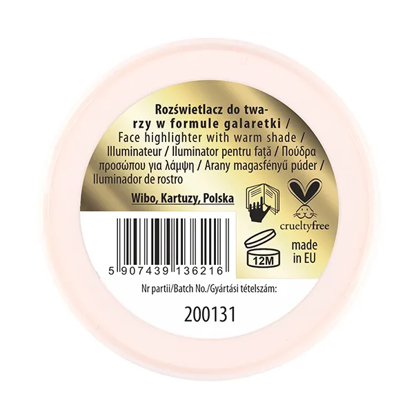 Хайлайтер для лица с желеобразной формулой теплого тона. Создает чудесный зеркальный эффект уже после первого применения, придавая коже здоровое влажное сияние. Необычная желеобразная формула позволяет быстро и легко наносить продукт пальцем, повышая при этом адгезию к коже. Кожа не испытывает ощущения сухости, которое может вызвать пудра.