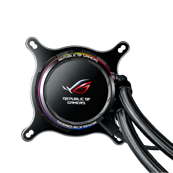 Необслуживаемая система водяного охлаждения процессора с цветным OLED-дисплеем, синхронизируемой подсветкой Aura и 120-миллиметровыми вентиляторами ROG на радиаторе. Современная эстетика: металлизированная отделка помпы и адресуемые светодиоды, стильный дизайн, соответствующий облику материнских плат серии ROG, прочные трубки в защитной оплетке.