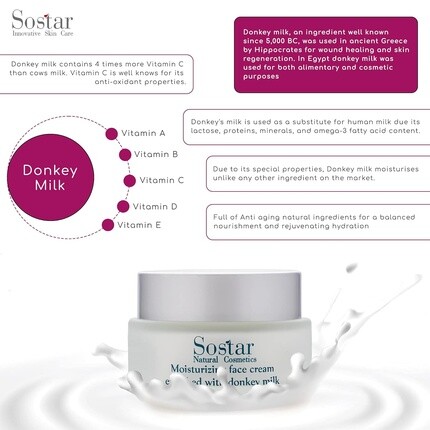 Sostar Увлажняющий крем для лица с ослиным молоком 50мл