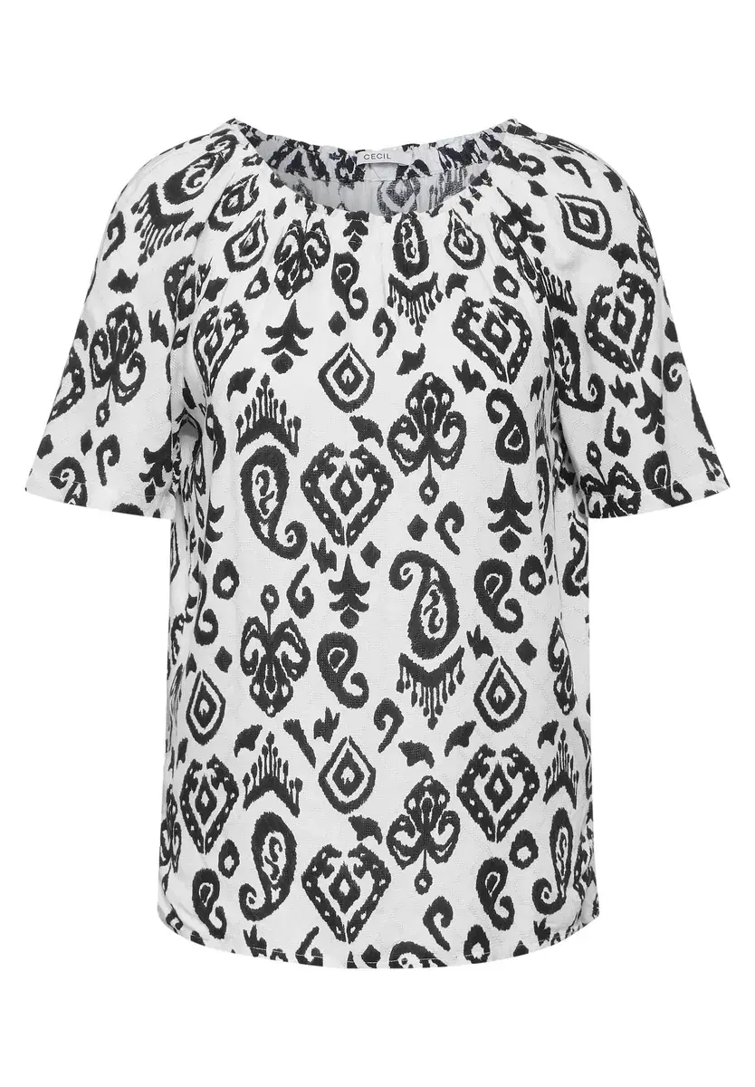 Принт CECIL Блузка Carmen, летняя блузка, эластичный вырез с оборками, короткие рукава, орнамент. Женская блузка Carmen от CECIL — очаровательная летняя блузка с эластичным вырезом и короткими рукавами. Орнаментальный рисунок придает ему игривый вид, а для придания универсальности и стиля его можно носить с плеча. Летняя блузка, эластичный вырез с оборками, короткий рукав, орнамент в стиле Кармен, размеры для европейского размера M примерно. Длина 59 см, обхват груди 111 см, ширина низа 115 см. Материал: 100% вискоза Особенности: Изготовлен из мягкой вискозы. Состав материала: 100% вискоза Примечание по размеру: Материал: 100% вискоза. Инструкции по уходу при отбеливании: Не отбеливать. Инструкции по уходу при глажке: Гладить при умеренной температуре (2 точки) / Гладить в тепле / Гладить при умеренной температуре Инструкции по уходу за тканями: Чистка ( P) / Чистая / Обычная процедура Указания по уходу при сушке: Не сушить в стиральной машине Указания по уходу при стирке: Деликатный цикл при 30°С Страна производитель: INЦелевая группа: Женщины