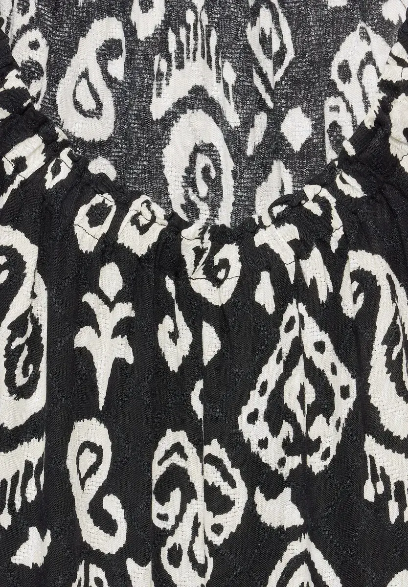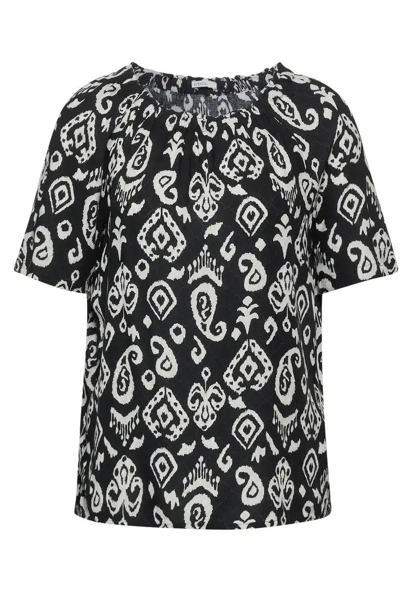 Принт CECIL Блузка Carmen, летняя блузка, эластичный вырез с оборками, короткие рукава, орнамент. Женская блузка Carmen от CECIL — очаровательная летняя блузка с эластичным вырезом и короткими рукавами. Орнаментальный рисунок придает ему игривый вид, а для придания универсальности и стиля его можно носить с плеча. Летняя блузка, эластичный вырез с оборками, короткий рукав, орнамент в стиле Кармен, размеры для европейского размера M примерно. Длина 59 см, обхват груди 111 см, ширина низа 115 см. Материал: 100% вискоза Особенности: Изготовлен из мягкой вискозы. Состав материала: 100% вискоза Примечание по размеру: Материал: 100% вискоза. Инструкции по уходу при отбеливании: Не отбеливать. Инструкции по уходу при глажке: Гладить при умеренной температуре (2 точки) / Гладить в тепле / Гладить при умеренной температуре Инструкции по уходу за тканями: Чистка ( P) / Чистая / Обычная процедура Указания по уходу при сушке: Не сушить в стиральной машине Указания по уходу при стирке: Деликатный цикл при 30°С Страна производитель: INЦелевая группа: Женщины