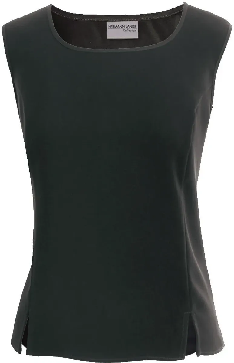 Слегка мерцающий топ из коллекции Hermann Lange. Короткие разрезы по переднему краю. Просторный круглый вырез. Комфортное, плавное качество.