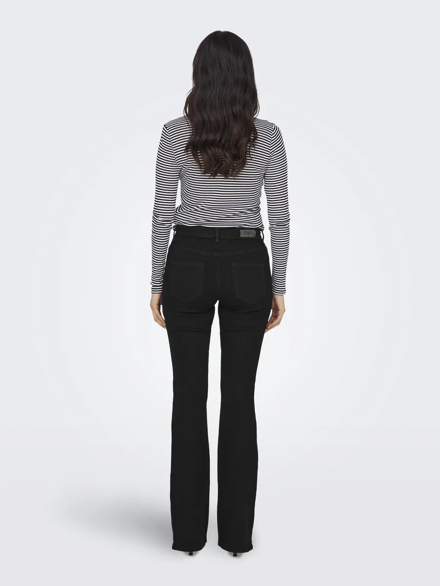 Многогранные женские джинсы буткат от бренда ONLY. С нормальной высотой талии. Можно комбинировать для отдыха на природе или во время прогулки по городу. Прочные брюки благодаря прочному и прочному джинсовому материалу.