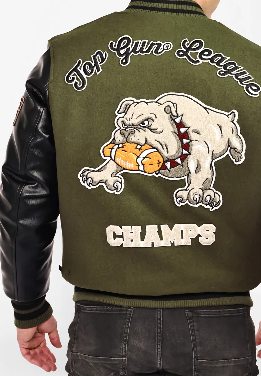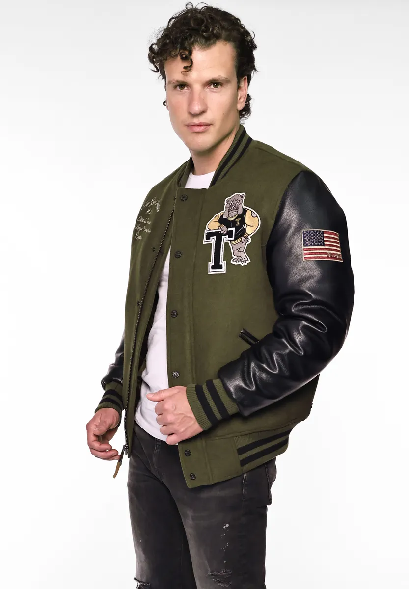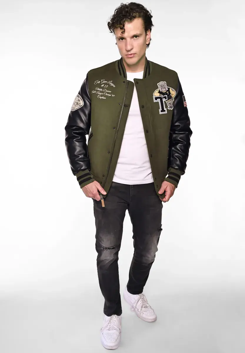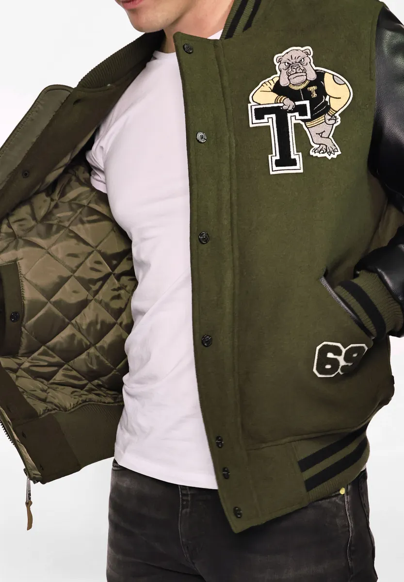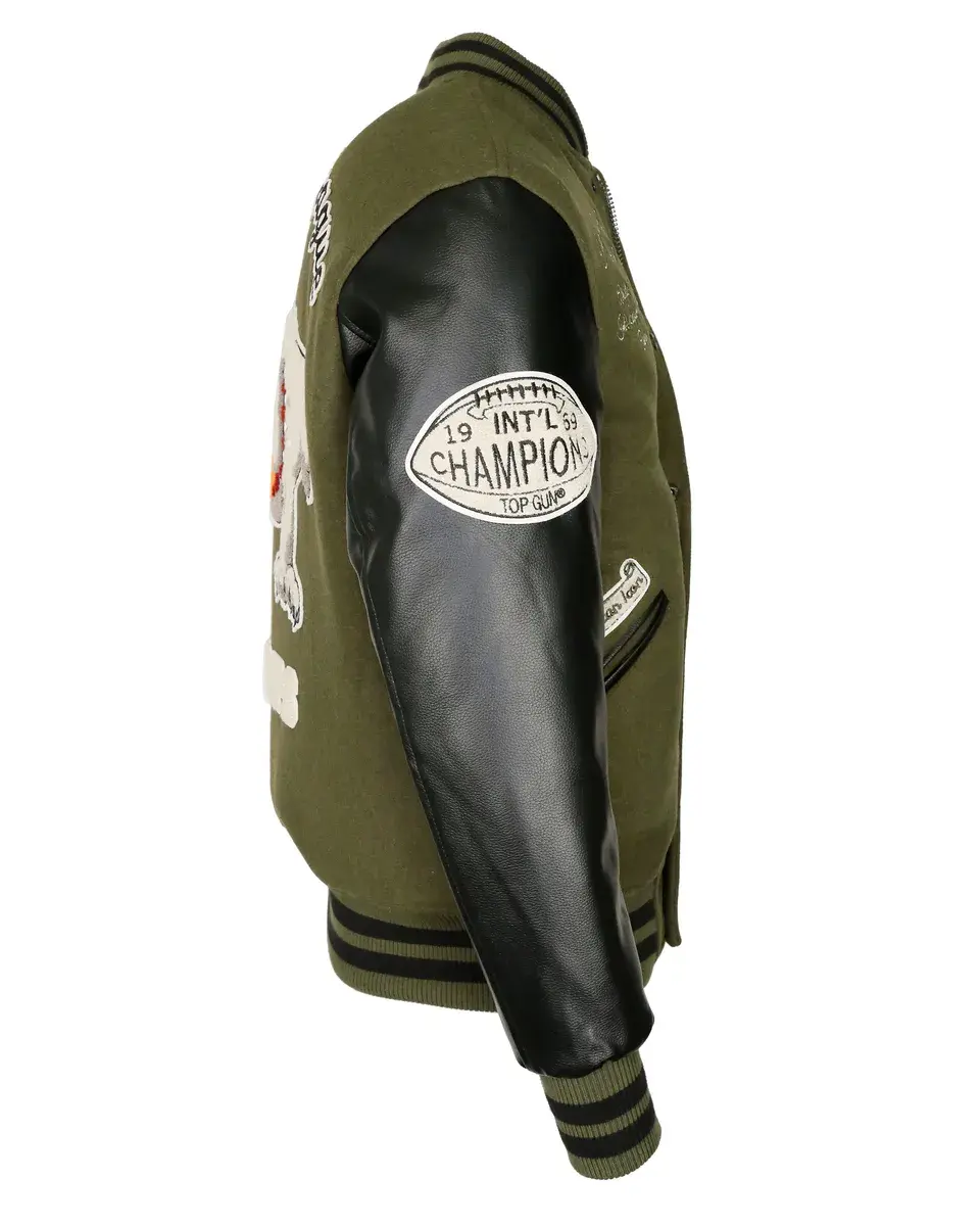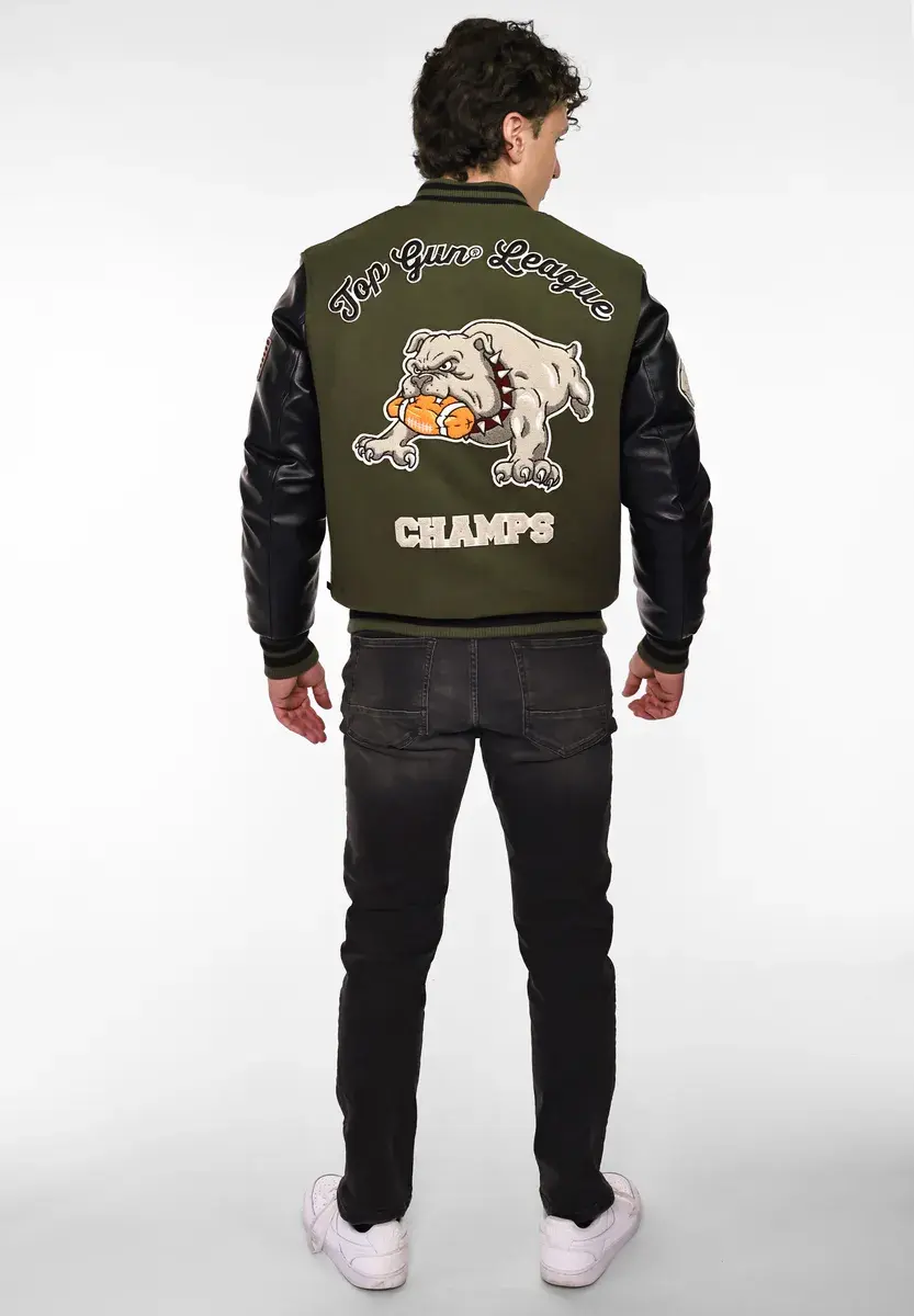 Пришитые нашивки с типичными мотивами Top Gun придают куртке дополнительную выразительность повседневному образу – с красивым рисунком внутри и эластичной вязкой на манжетах, поясе и воротнике. Спортивная куртка с рукавами, имитирующими кожу, имеет два боковых кармана и крупный узор на спине.