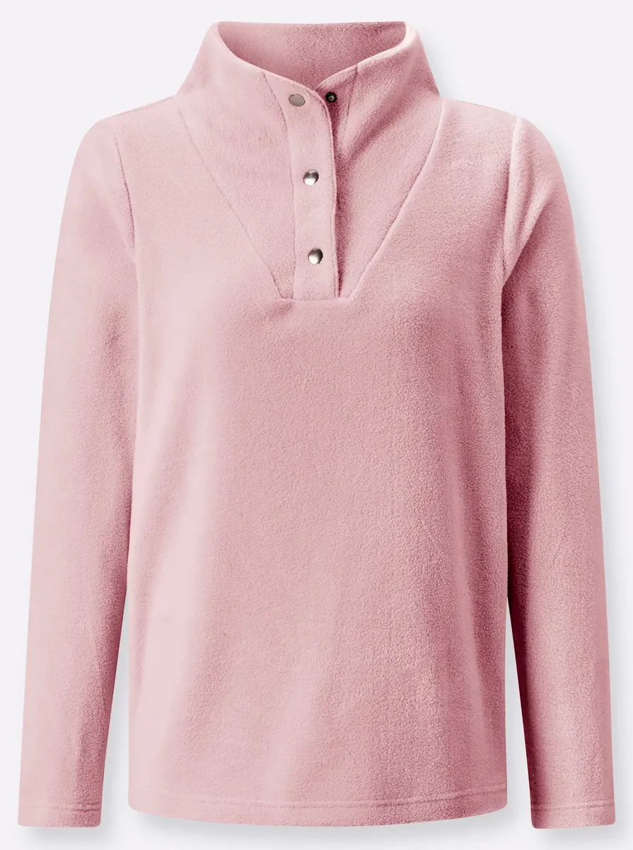 Приятная теплая флисовая рубашка с воротником-стойкой, застегивающимся на 3 кнопки. Длинные рукава. Удобно носить и легко ухаживать. 100% полиэстер. Машинная стирка.
