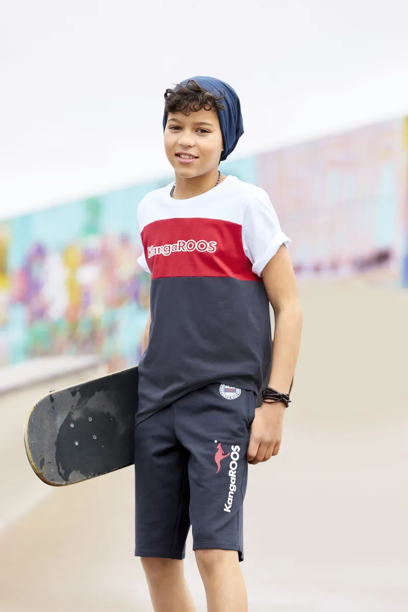 Спортивная футболка от KangaROOS. С обычным широким вырезом. Круглый вырез горловины дополнен ребристой манжетой. Эластичный и мягкий трикотаж делает верх комфортным для кожи.