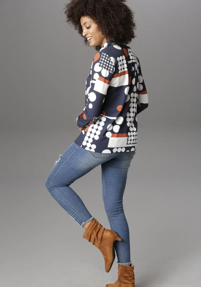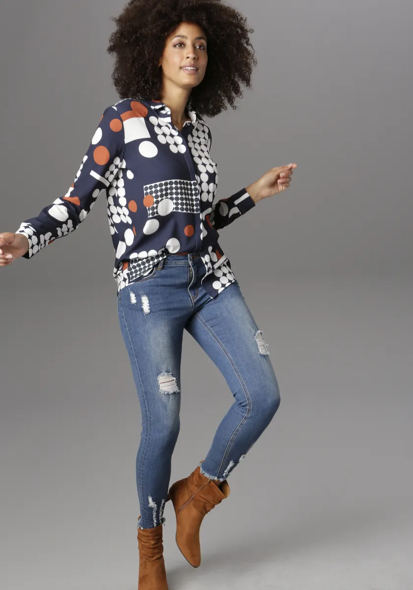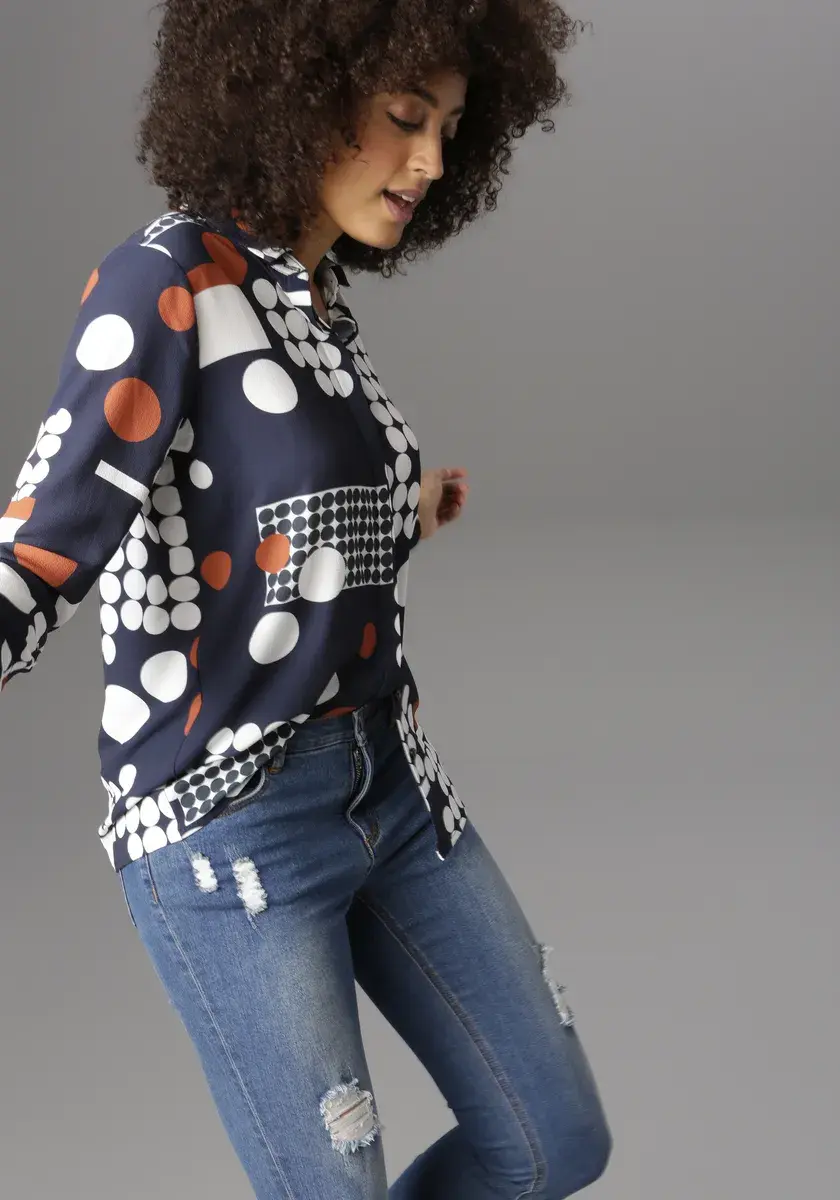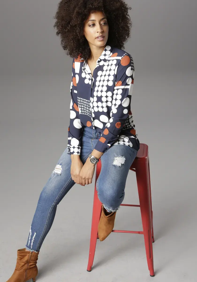 Блузка-рубашка Aniston SELECTED с современным точечным принтом, белый