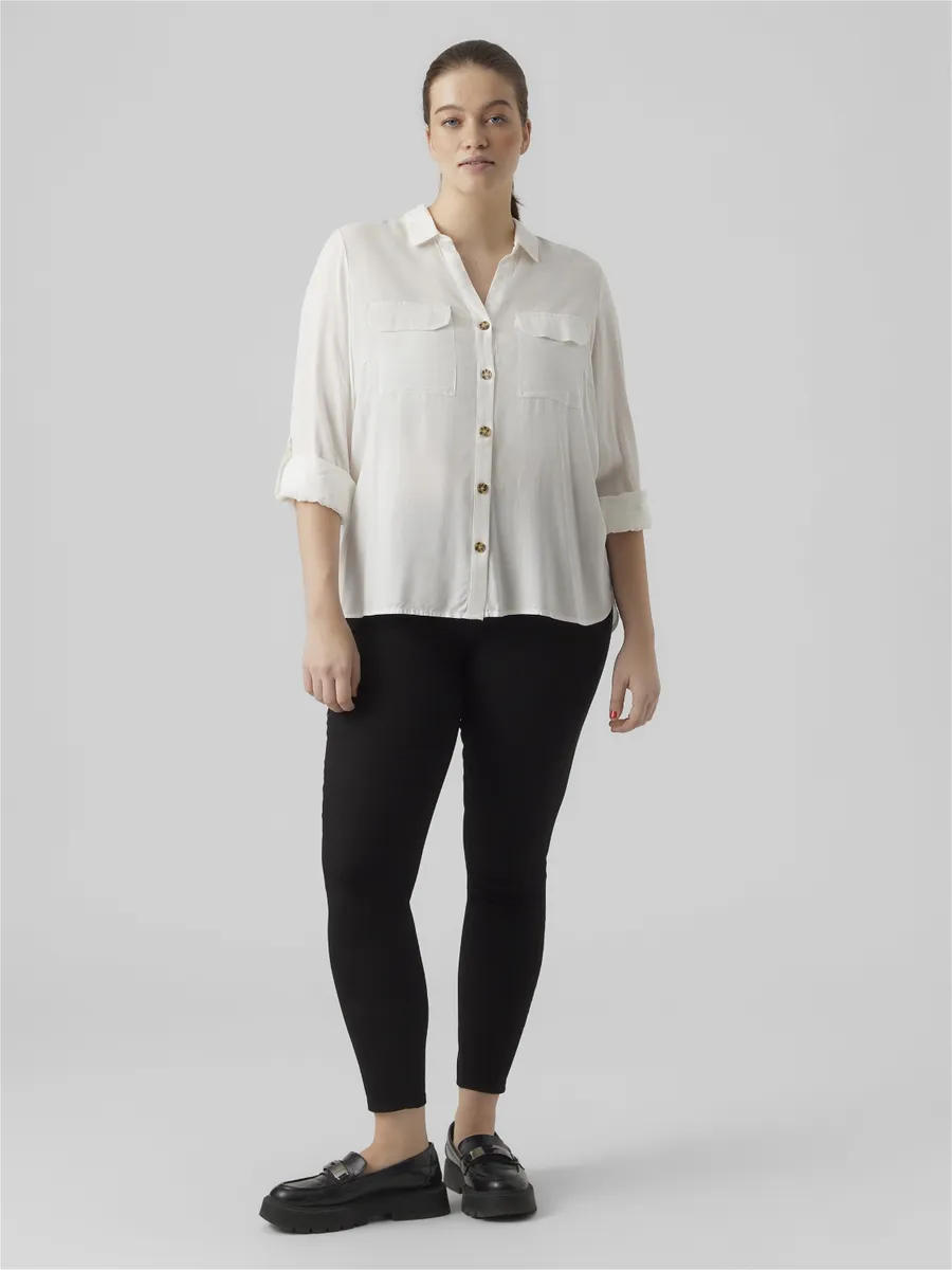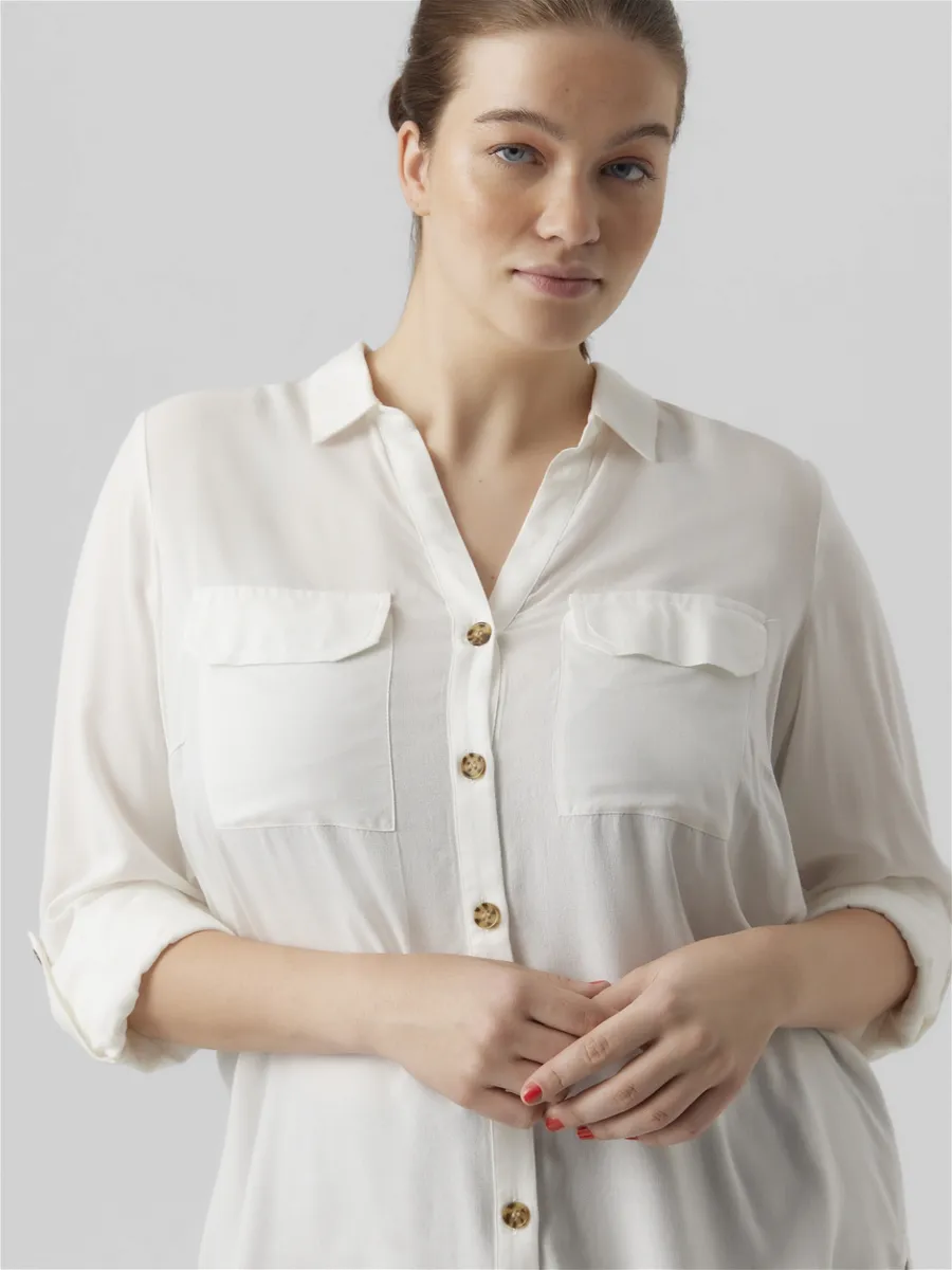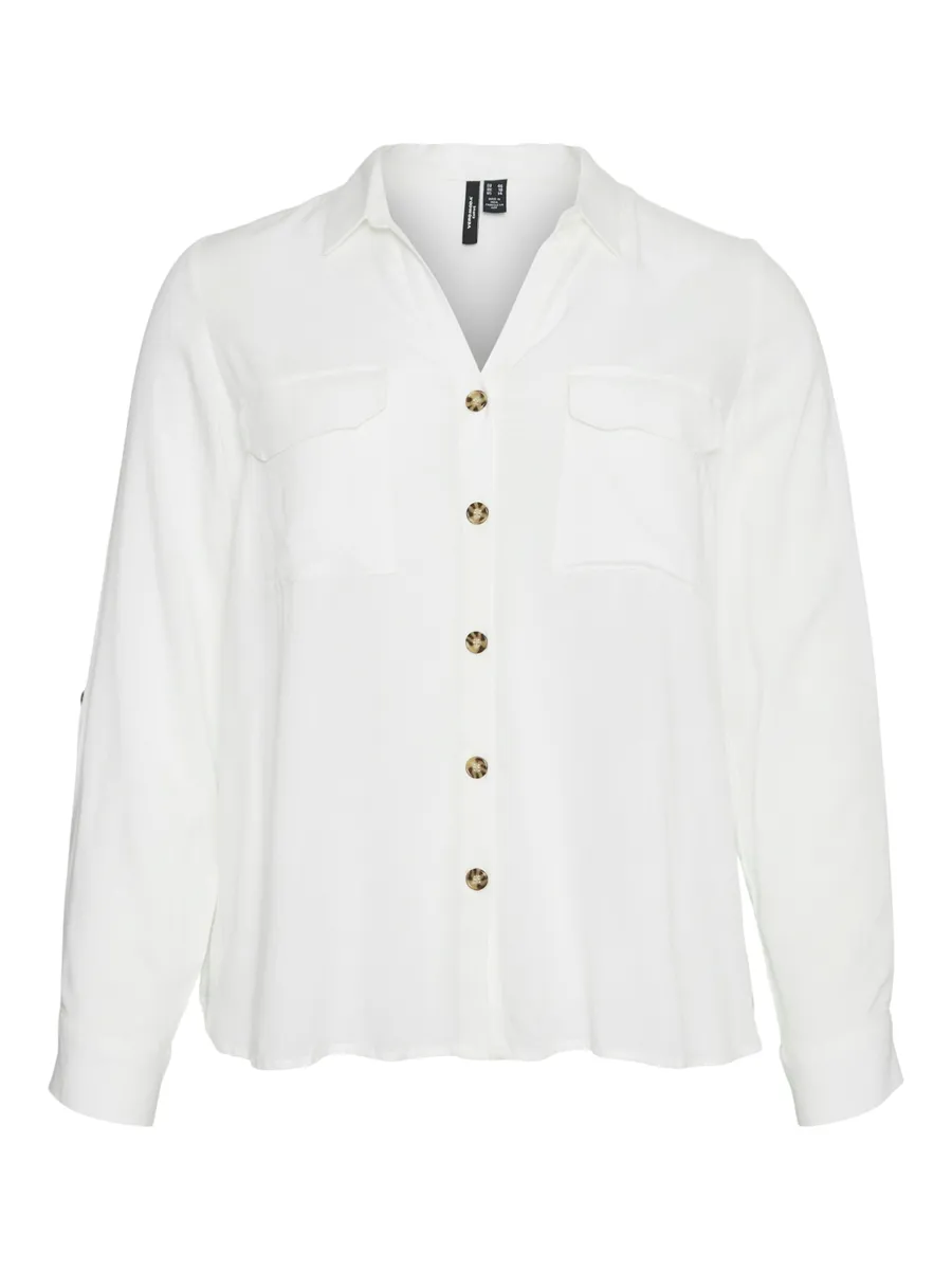 Блузка-рубашка Vero Moda Curve "VMBUMPY L/S SHIRT NEW CURVE GA NOOS", белый
