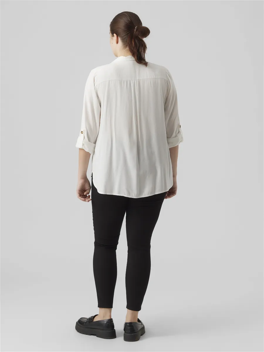 Модная женская блузка-рубашка от Vero Moda Curve. С обычным кроем и расширенной спинкой. Рукава длинные. За верхом легко ухаживать благодаря качественному плетению.