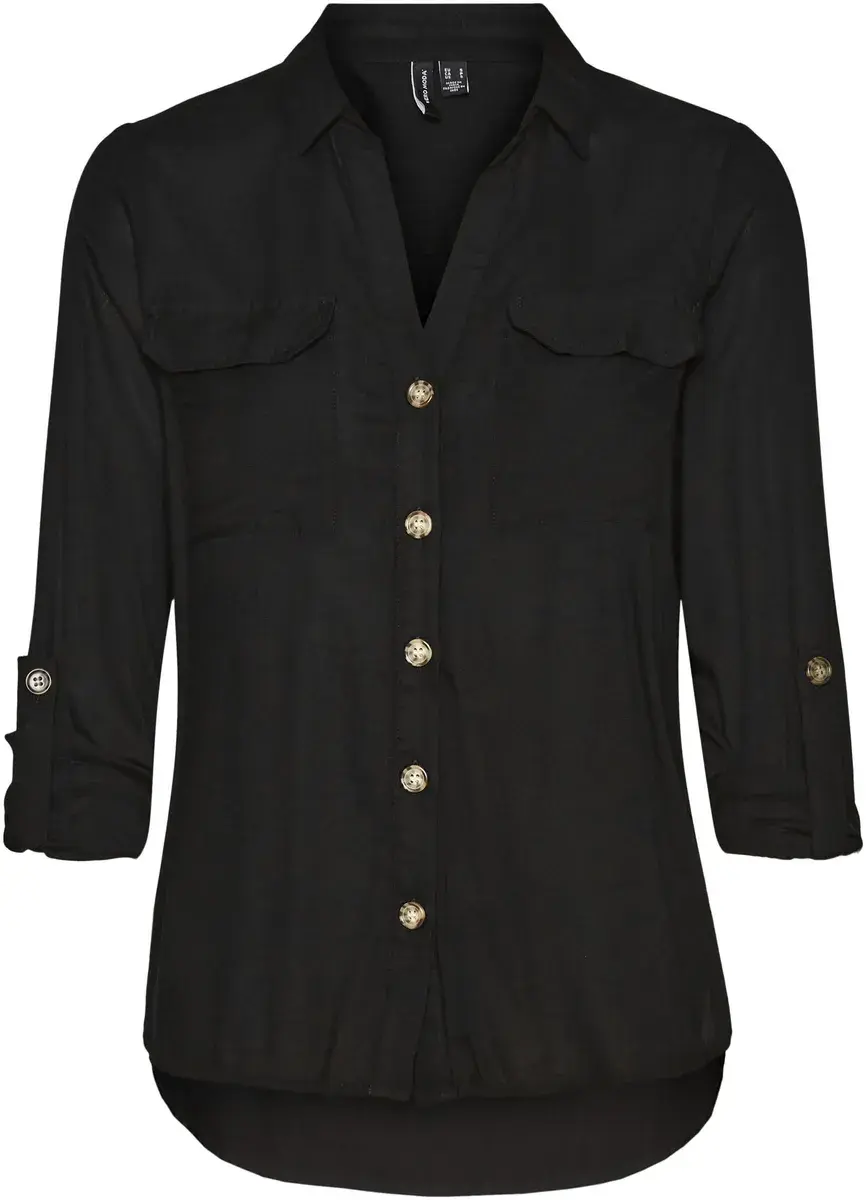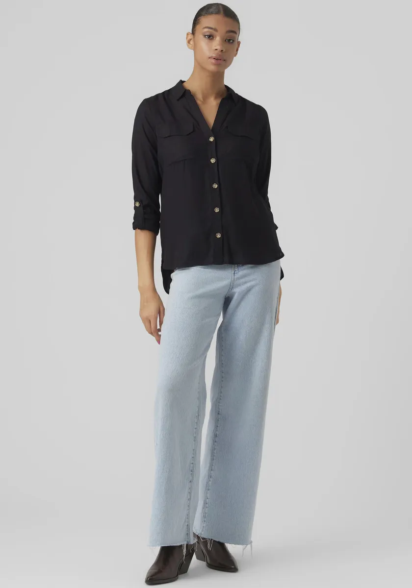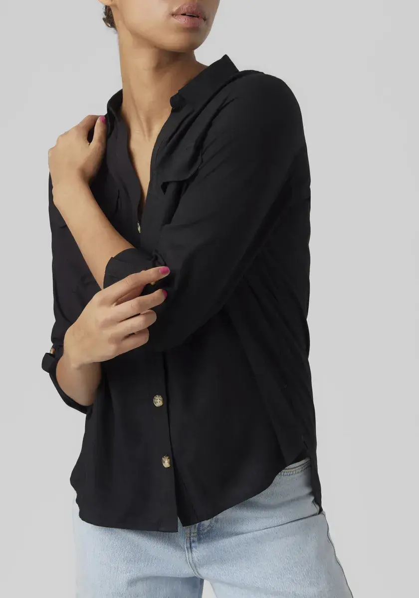 Модная женская блузка-рубашка от Vero Moda. С обычным разрезом. Рукава с хлястиками длинные. Благодаря мягкой ткани верх становится легким в ношении.