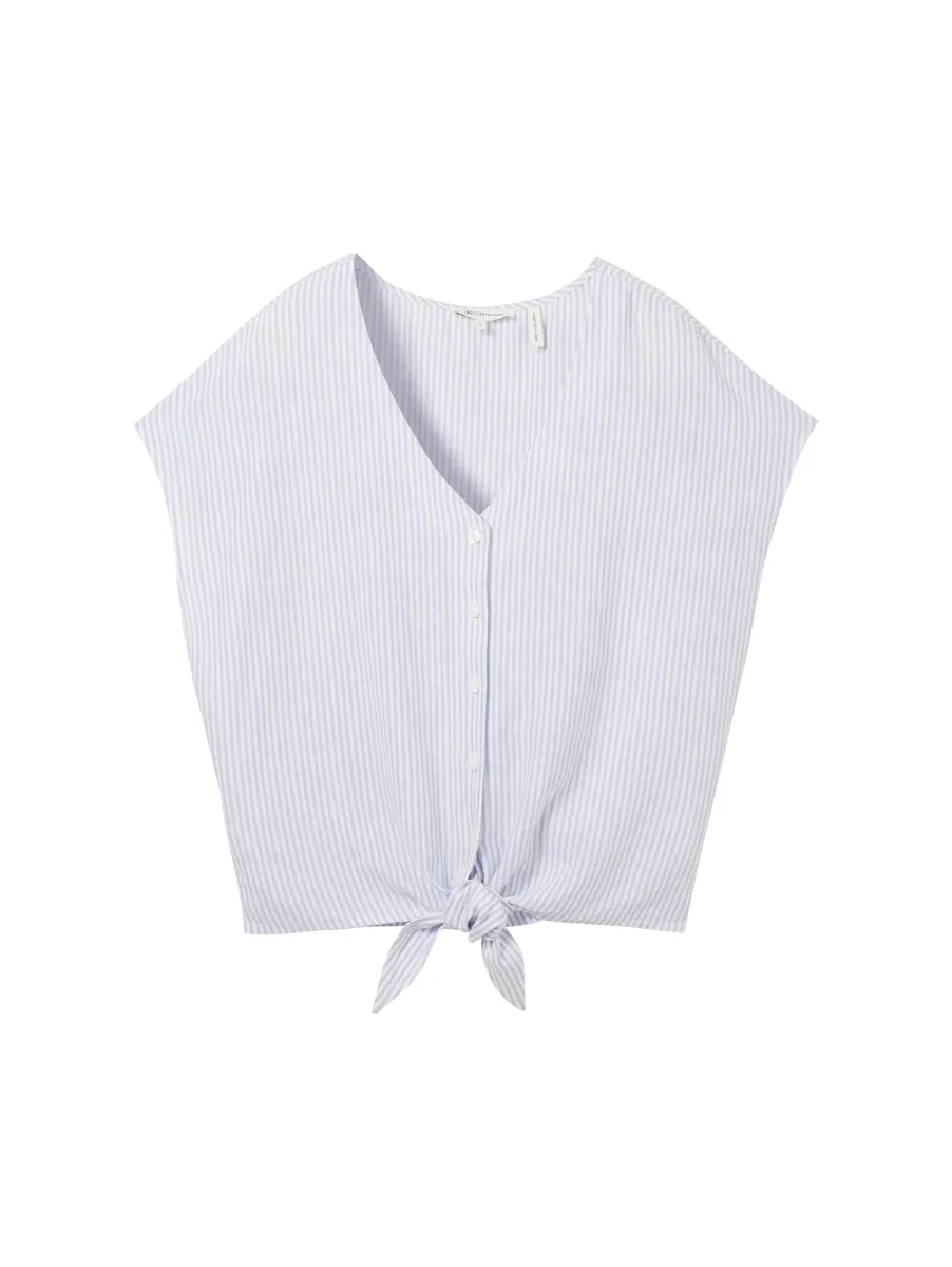 Джинсовая блузка TOM TAILOR с короткими рукавами и узлом Tom Tailor Denim, цвет Light Blue White Small Stripe