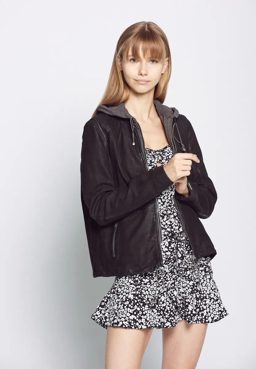 Модная женская кожаная куртка из кожи ягненка от MAZE. Встроенные боковые карманы на молнии и красивая хлопковая вставка с капюшоном, который можно снять с помощью молнии, делают куртку изюминкой. Посадку куртки можно легко регулировать с помощью эластичной ленты на капюшоне и подоле. Кроме того, внутренняя часть куртки имеет удобную хлопковую подкладку и два внутренних кармана - идеальный компаньон в переходный период.Базовая версия: Не отбеливать: Не отбеливатьГлажение: Не гладитьПодкладка: Легкая подкладкаПол: ЖенскийРазмерный диапазон: Американские размерыСтрана-производитель: ПакистанКуртка стиль: Кожаная курткаКоллекция: Весна/Лето 20Воротник/вырез: капюшонМатериал подкладки: ХлопокМатериал внешней ткани: 100% кожа ягненкаМатериал подкладки рукавов: полиэстерСвойства материала: кожаСостав материала: Внешний материал: 100% кожа овчины / Подкладка: 100% хлопок / Капюшон: 60% хлопок, 40 % полиэстер. Подкладка рукавов: 100 % полиэстер. Детали верха: не указано. Посадка: стандартная. Тип/стиль изделия: куртка. Крой: индивидуальный. Специальные размеры. Уровень продукта: не указано. Стиль: куртка. Тип застежки: молния. Длина спинки: около 55 см для каждого размера. С