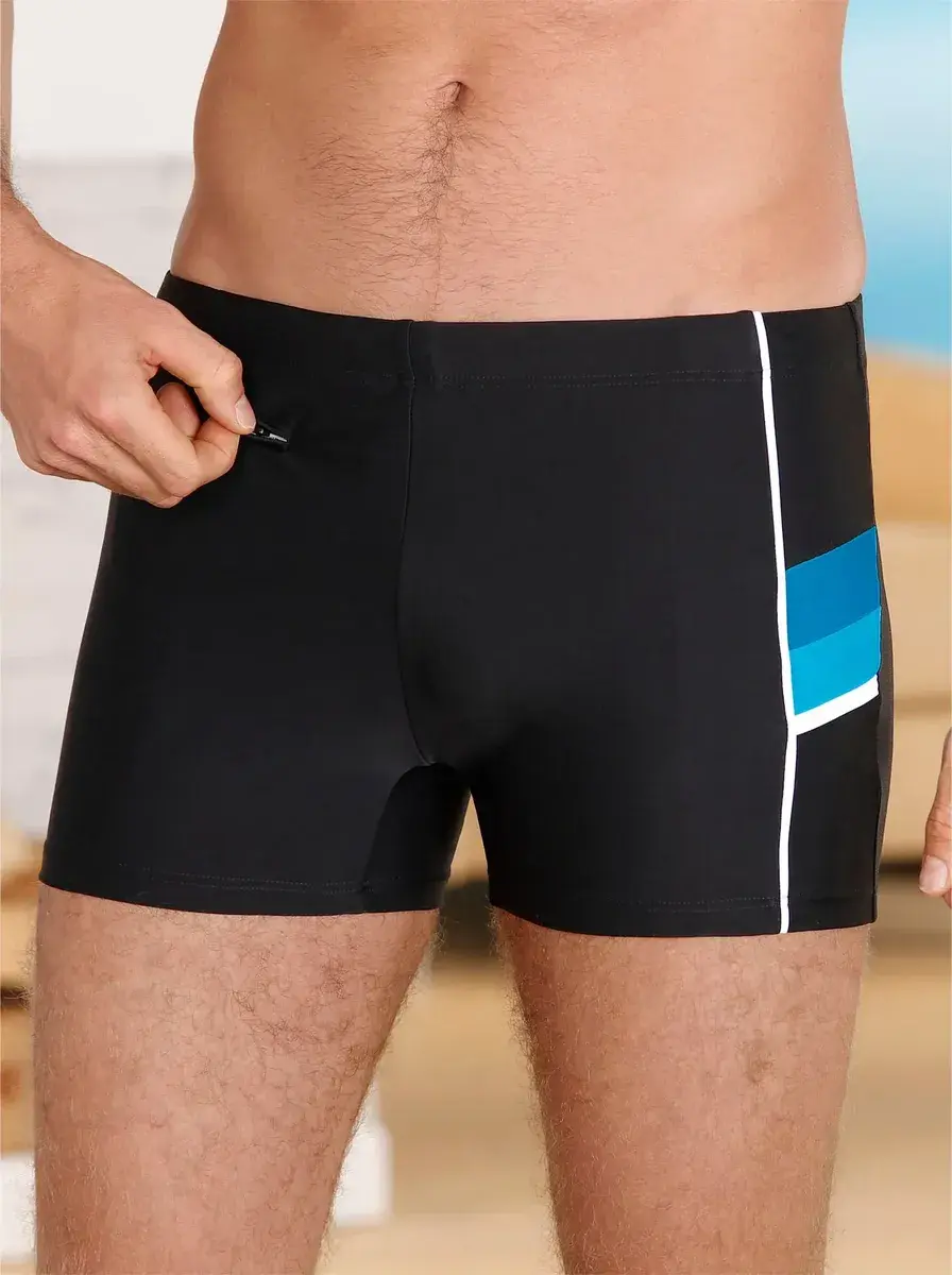 Спортивные плавки с контрастными вставками и окантовкой спереди. Особенно практично: небольшой карман на молнии спереди. Эластичный пояс по всему периметру с внутренней кулиской и завязывающимся ремешком. 80% полиамид, 20% эластан. Подкладка: 100% полиамид.