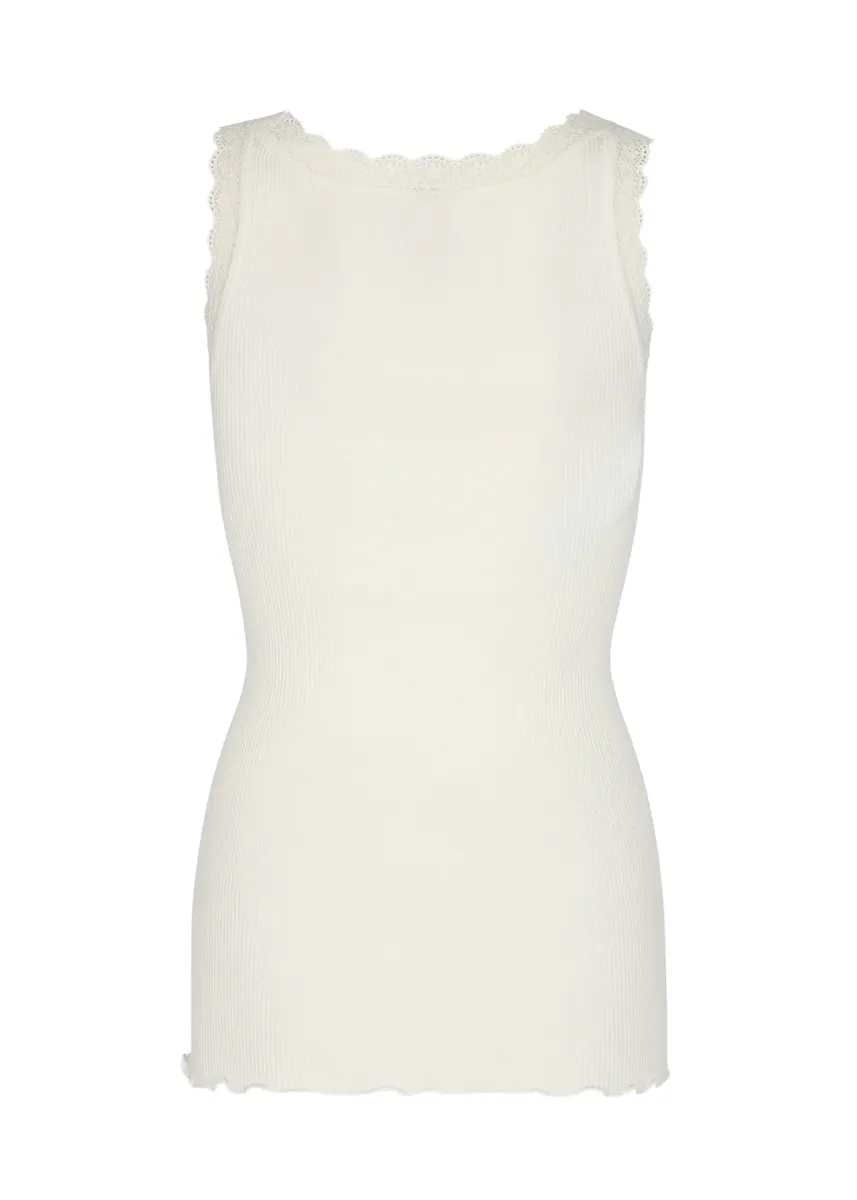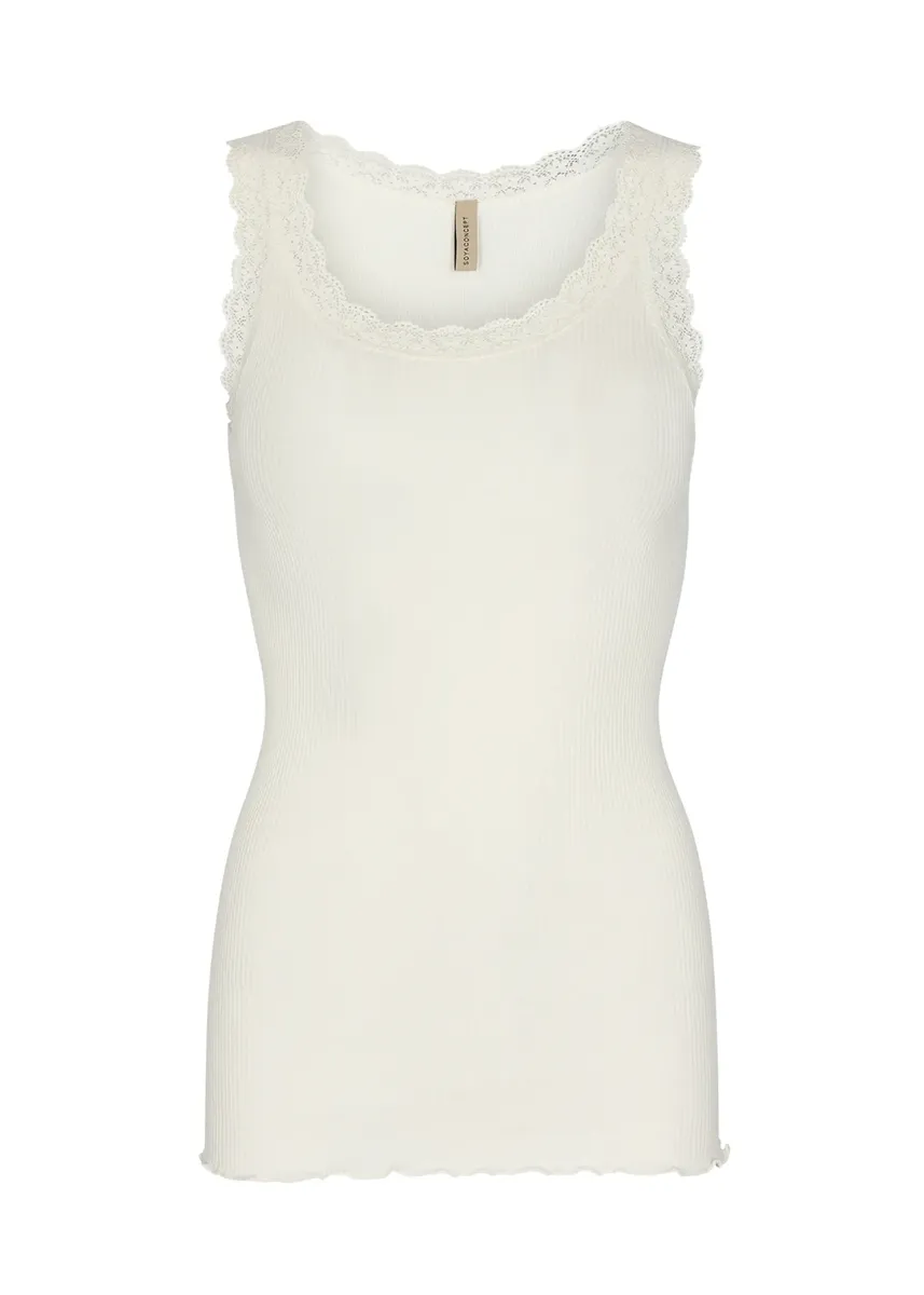 С кружевом на бретелях и круглым вырезом.