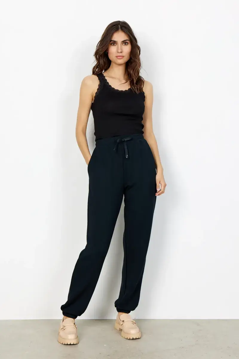 Модная женская майка от soyaconcept. Можно совместить работу и отдых. Эластичный и мягкий трикотаж делает верх комфортным для кожи.