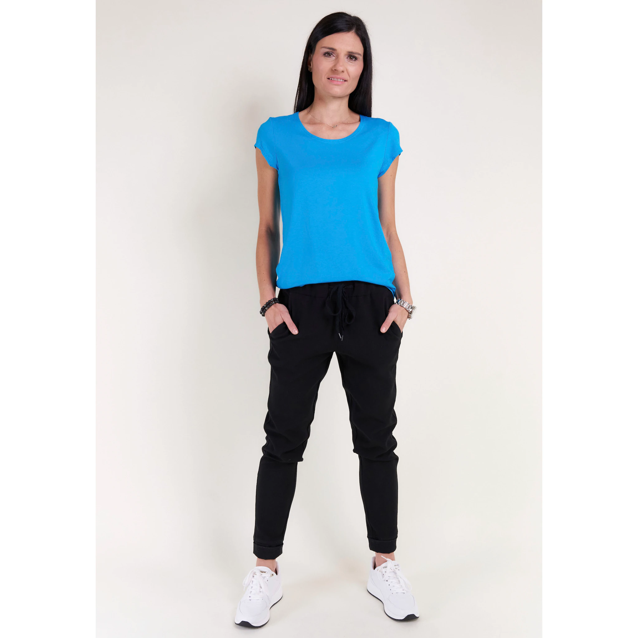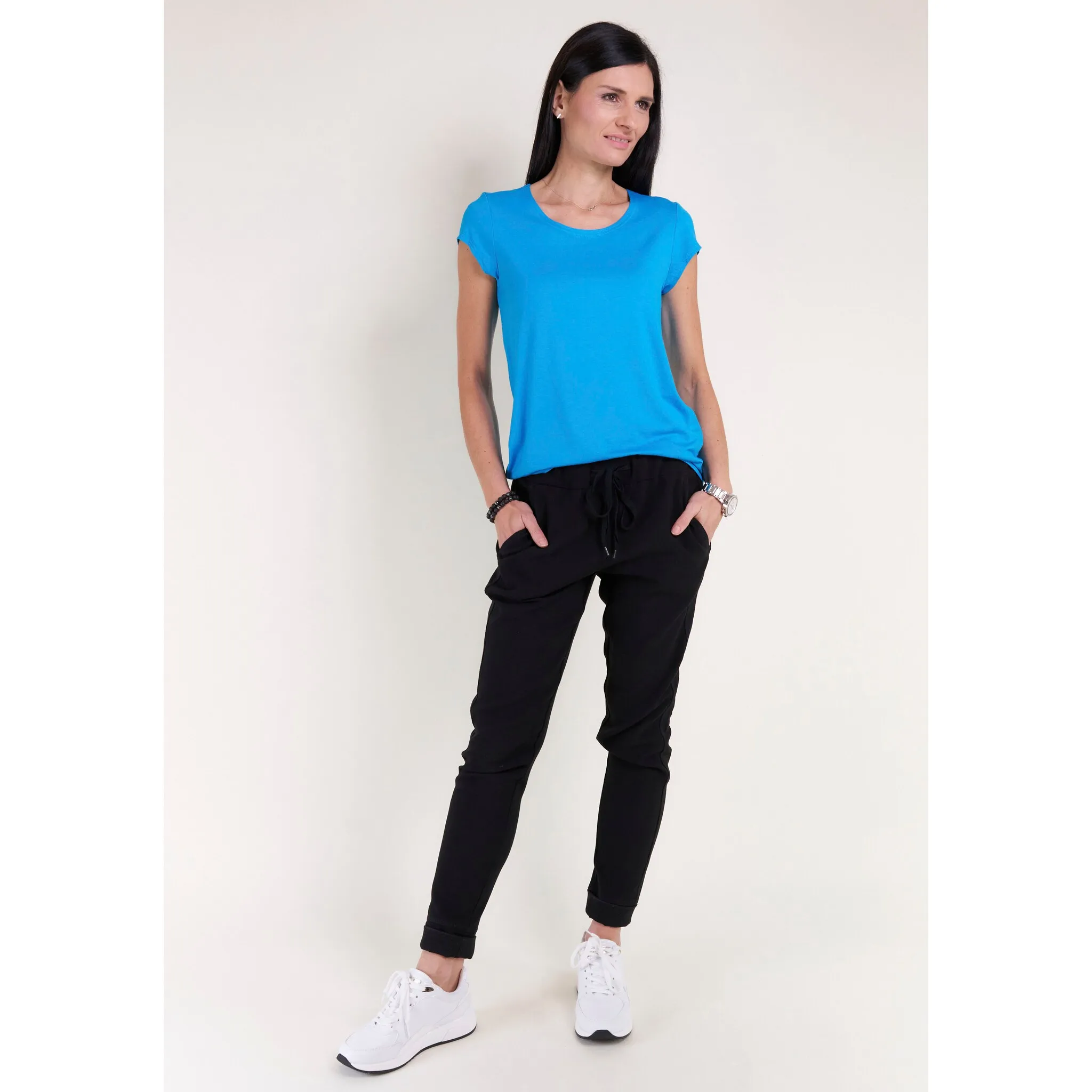 Мягкий струящийся трикотаж из смеси вискозы и эластана.