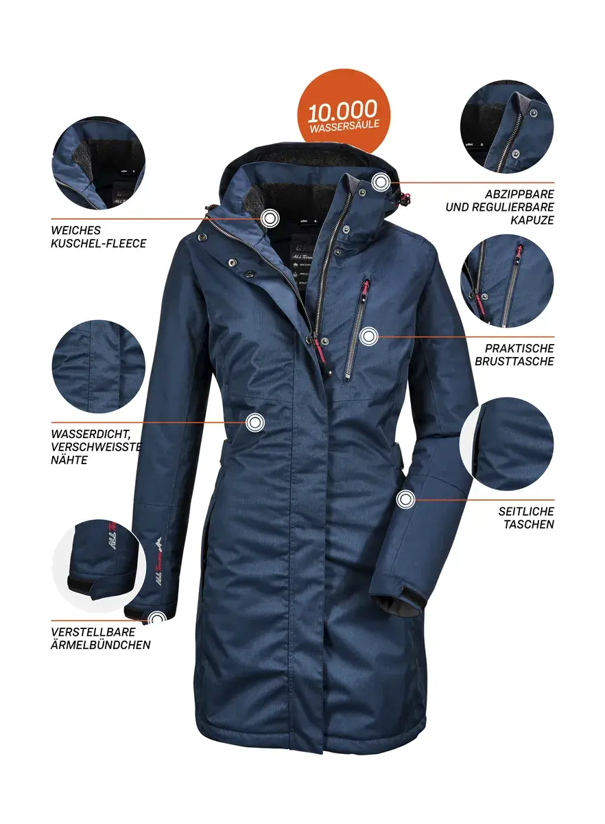 Модная и в то же время неподвластная времени функциональная парка от killtec со съемным регулируемым капюшоном и особенно уютным, теплым плюшевым флисом отличается высоким уровнем комфорта и практичными деталями. Кроме того, уличная парка обладает весьма функциональными свойствами. Благодаря водяному столбу 10 000 мм и сварным швам парка на 100% водонепроницаема и ветронепроницаема. Это означает, что в нем всегда будет тепло и тепло, и вы останетесь сухими даже в снегопад и дождь. Кроме того, материал воздухопроницаем и имеет паропроницаемость 3000 г/м²/24 часа. Практичные карманы функциональной парки закрываются на молнии, а регулировка ширины на талии, подоле и манжетах особенно удобна.