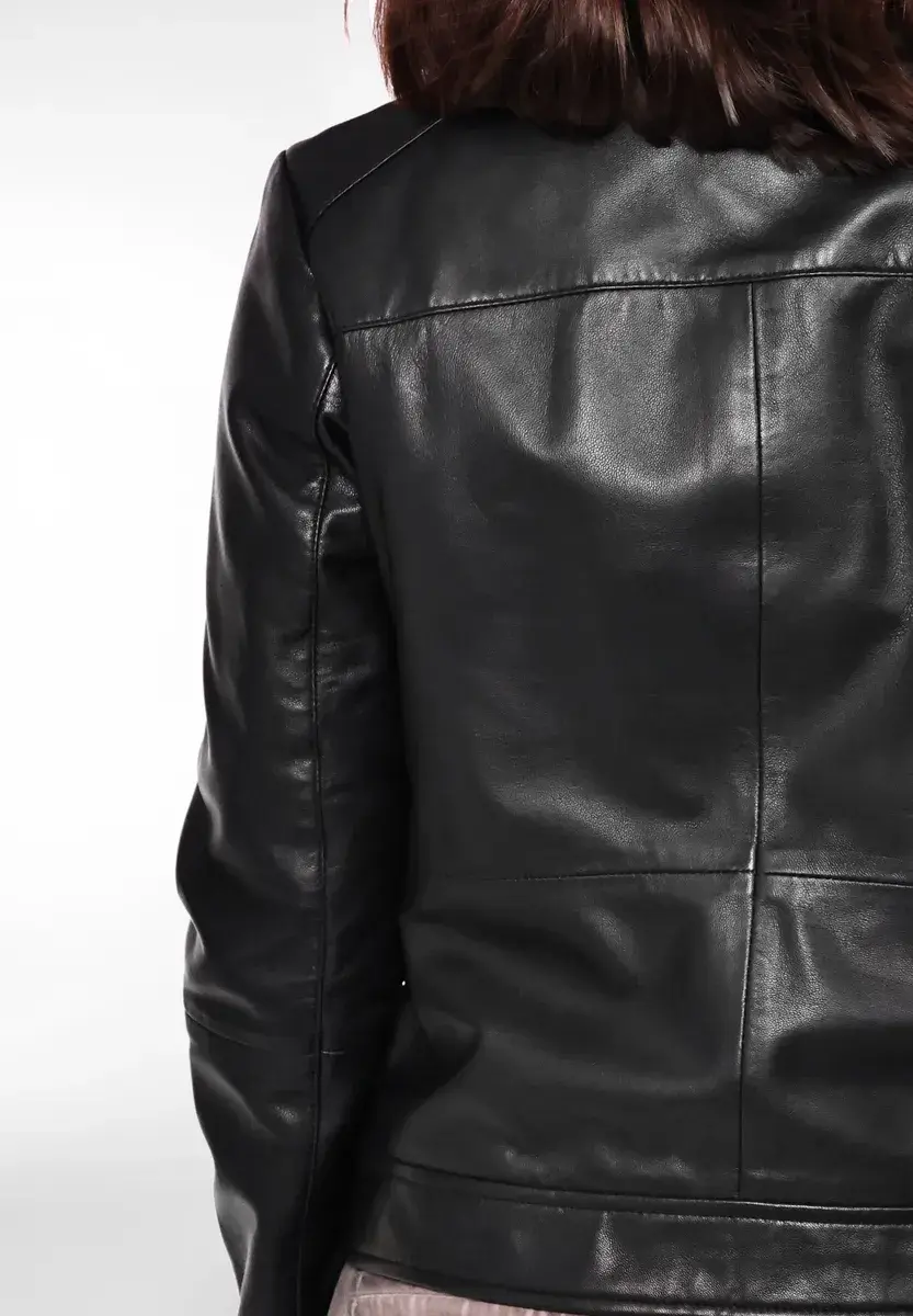 Модная кожаная куртка из мягкой овчины от MAZE. Искусно сшитые боковые карманы на молнии, два внутренних кармана и короткий воротник-стойка выполнены аккуратно. Благодаря красивым декоративным швам, распределенным по всей куртке, и горизонтальному нагрудному карману на молнии они привлекают внимание. Благодаря индивидуальному крою и удобной двухцветной хлопковой подкладке вы гарантированно будете чувствовать себя комфортно в этой куртке. Случай: Вечерняя/вечерняя одеждаБазовый вариант: НетОтбеливание: Не отбеливатьГлажение: Не гладитьПодкладка: Легкая подкладкаПол: ЖенскийРазмерный ряд: Американские размерыСтрана происхождения : Индия Фасон куртки: Кожаная курткаКоллекция: Весна/Лето 20Воротник/вырез: воротник-стойкаМатериал подкладки: ХлопокМатериал внешней ткани: Гладкая кожаМатериал подкладки рукавов: ПолиэстерСвойства материала: КожаСостав материала: Внешний материал: 100% овечья кожа / Подкладка: 100% хлопок / Подкладка рукавов Состав: 100% полиэстер Детали верха: не указаноПосадка: Нормальная посадкаИнструкции по уходу: Специальная чистка кожиТип/стиль изделия: КурткаПокрой: ИндивидуальныйСпециальные размеры Уровень продукта: не указаноСтиль: курткаТип застежки: молнияДлина спины: около 54 см для размера. С