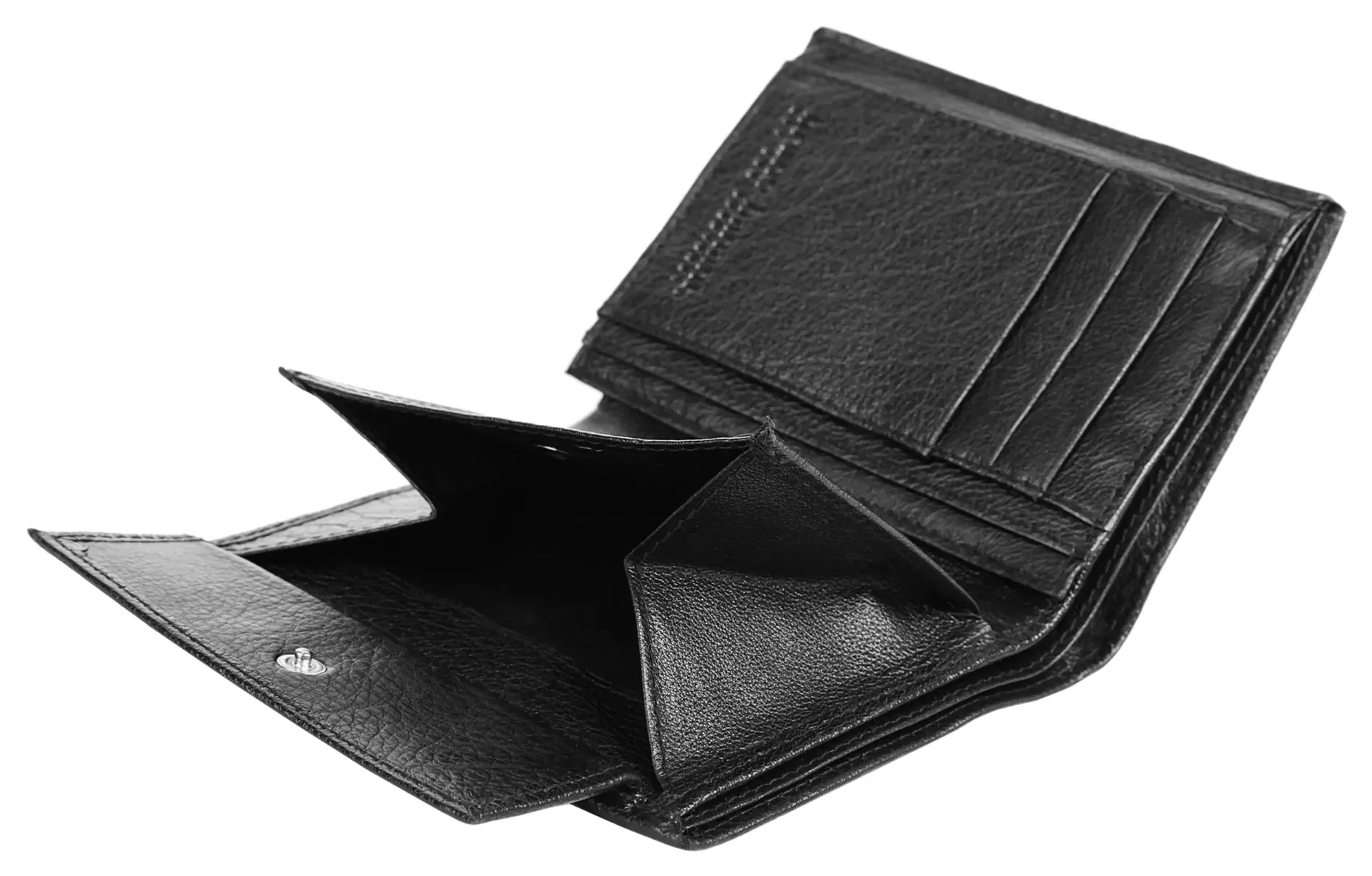 2 отделения для банкнот, 6 для карт, 6 вкладышей и 2 смотровых отделения.