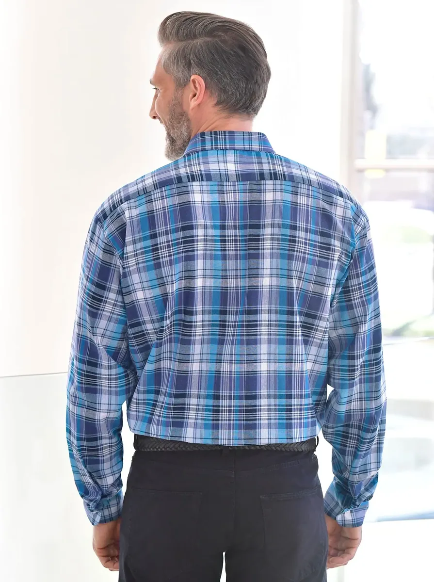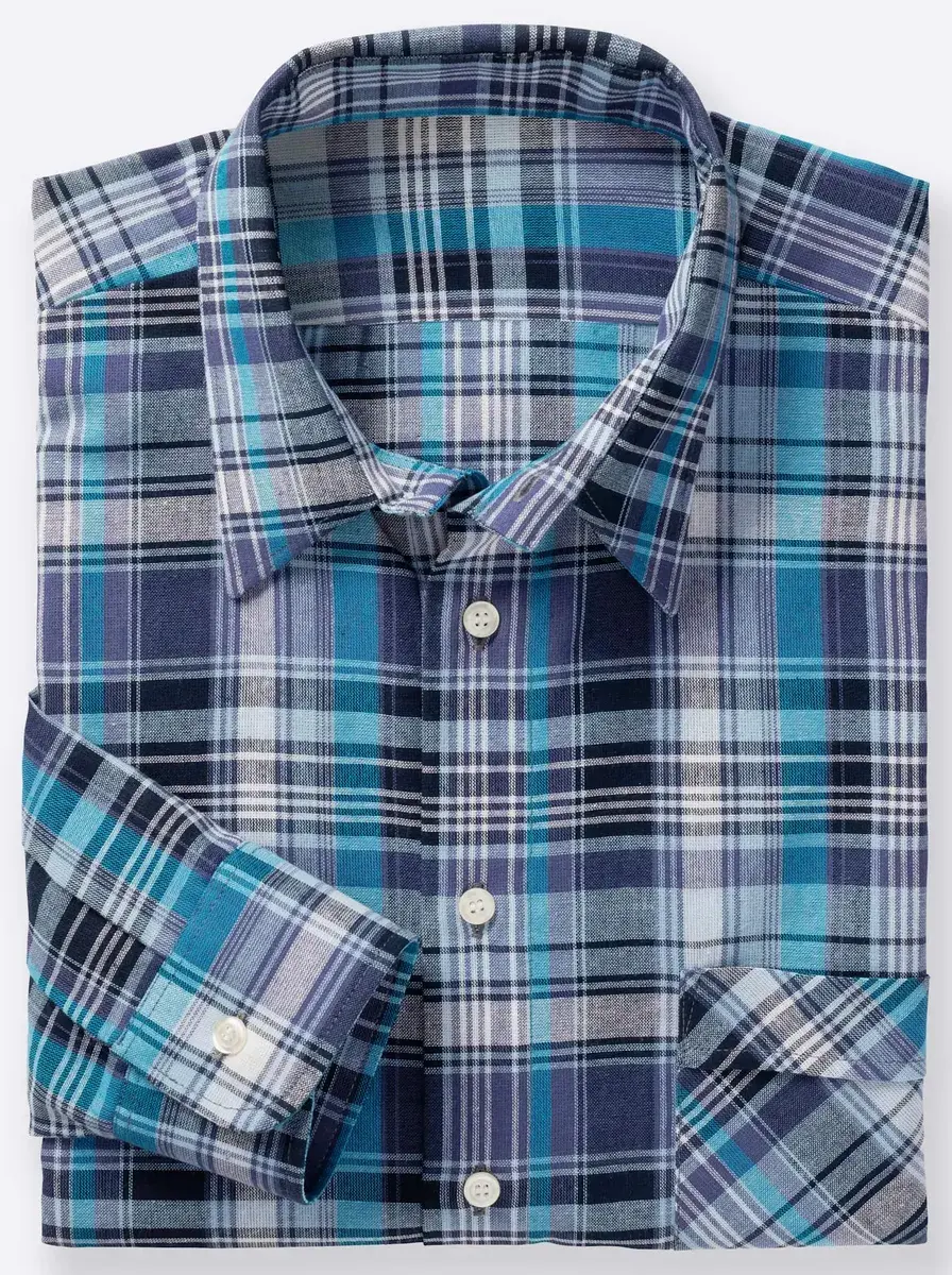 Чековые модели всегда в сезоне! Рубашка с длинными рукавами из прочного поплина. С кентовым воротником и нагрудным карманом. 100% хлопок. Машинная стирка