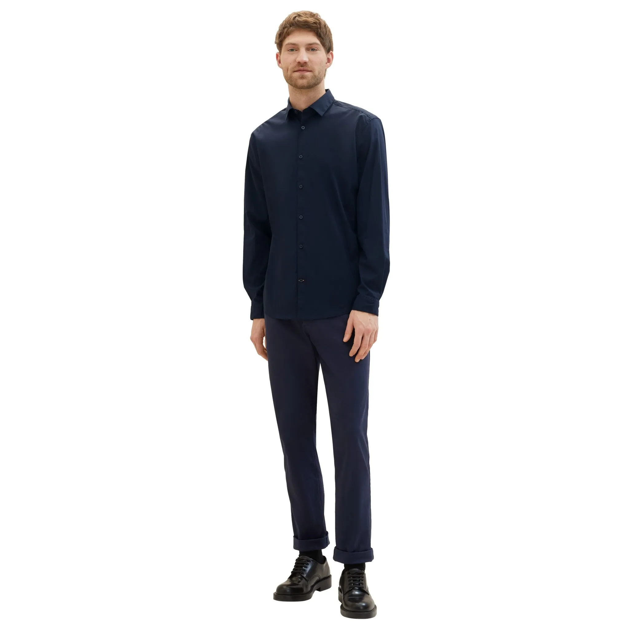 Незамысловатая мужская рубашка с длинными рукавами от TOM TAILOR. С обычным разрезом. Это позволяет создавать модные и универсальные образы. Верх удобен в ношении благодаря мягкому хлопку.