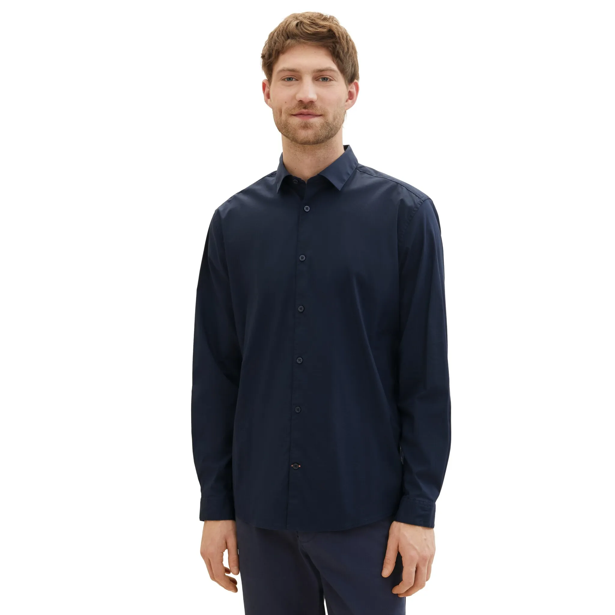 TOM TAILOR рубашка с длинными рукавами "Поплин", с манжетами, синий
