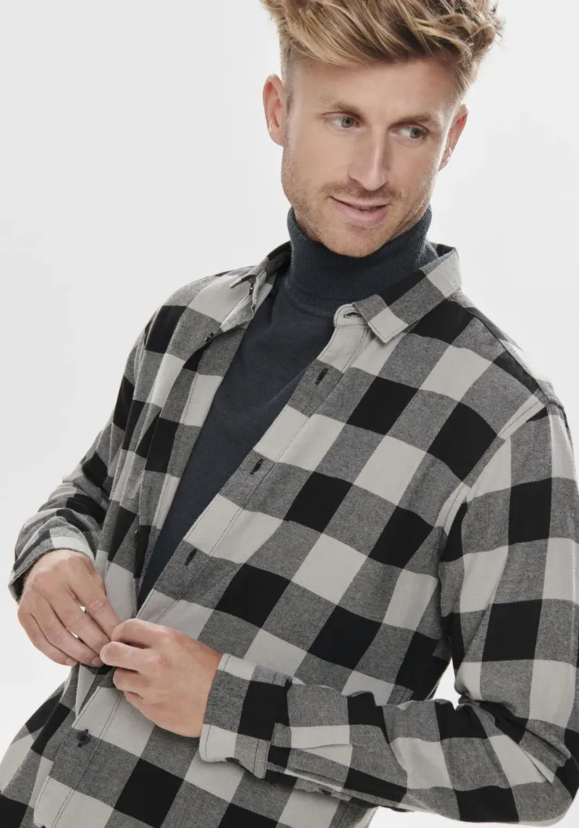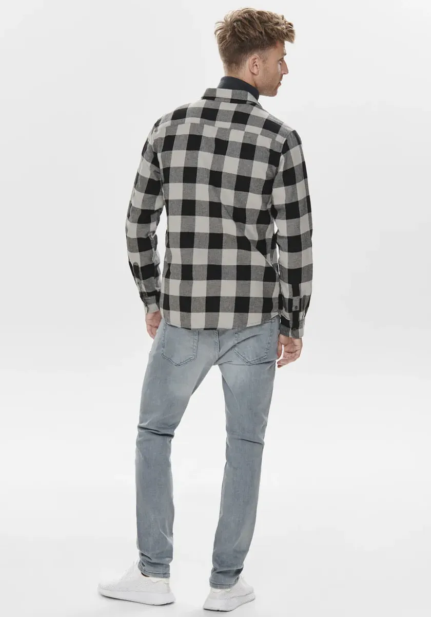 Рубашка в клетку ONLY & SONS "GUDMUND LS CHECKED SHIRT", серый