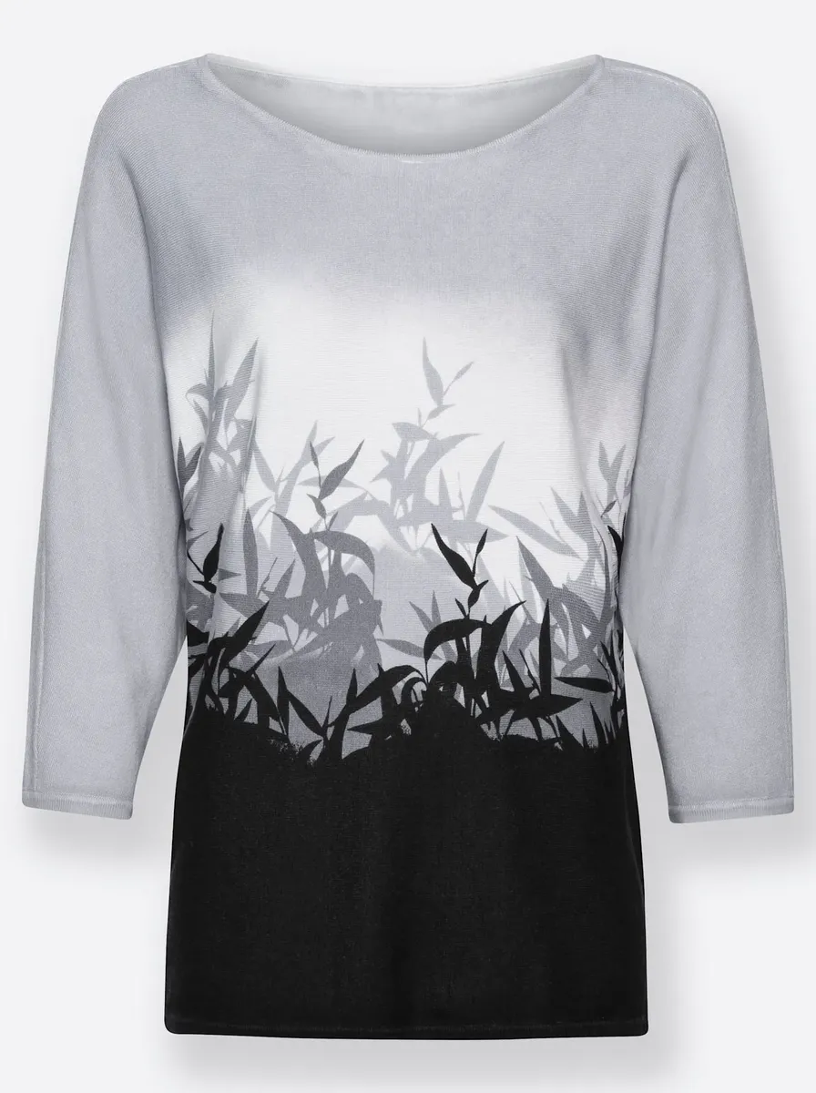 Откройте для себя этот свитер! Изящно связано из очень мягкой пряжи и украшено элегантным искусно расположенным принтом спереди и сзади. Широкий круглый вырез горловины и рукава «летучая мышь» длиной 3/4. 70% вискоза, 30% полиамид. Машинная стирка.