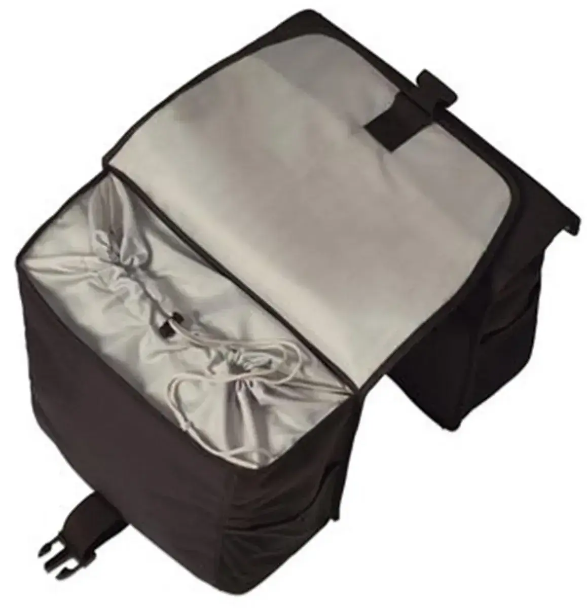 Черная современная двойная сумка Go быстро и легко крепится к багажнику благодаря двум ремням. Это означает, что у вас также есть место для ремней багажника, детского сиденья или пружинного щитка. Основное отделение сумки закрывается на шнурок и пряжку, а в эластичных боковых карманах можно разместить, например, бутылки или зонтик. Водоотталкивающий полиэстер защищает предметы внутри от брызг, а светоотражающие детали на сумке гарантируют, что вас будет хорошо видно даже в темноте.