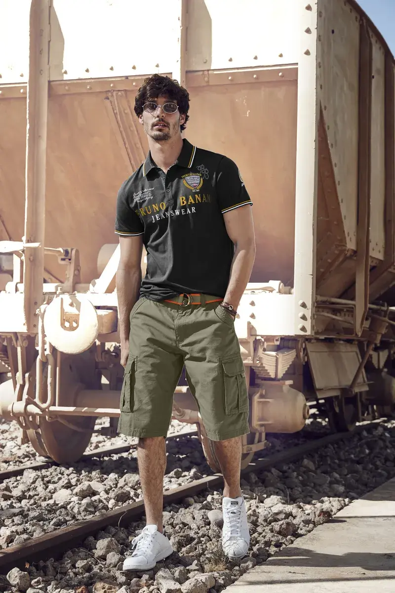 Незамысловатая мужская рубашка-поло от Bruno Banani. С гибким вырезом. Рубашка также имеет планку с пуговицами. Он украшен модными значками. Верх комфортен на коже благодаря дышащей ткани пике.