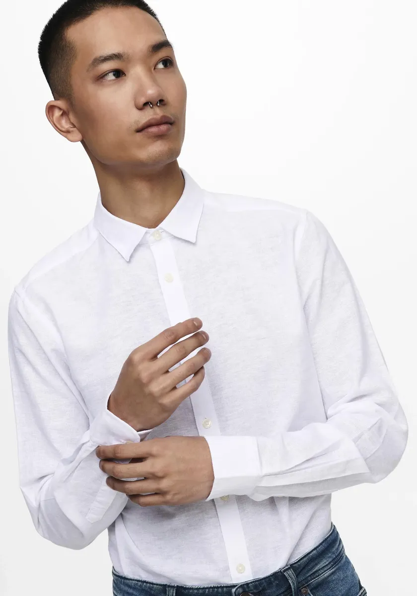 Рубашка с длинными рукавами ONLY & SONS "ONSCAIDEN LS SOLID LINEN SHIRT NOOS", белый