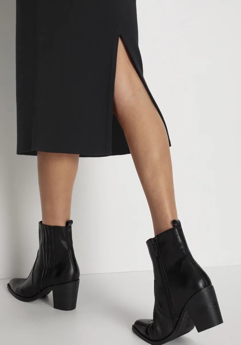 С широким эластичным поясом и разрезом сзади.