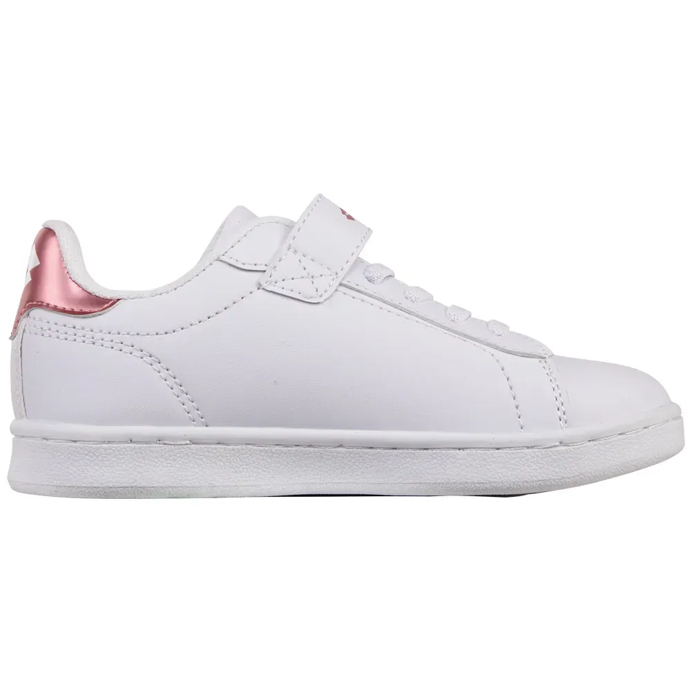 Чистые кроссовки в модном теннисном ретро-дизайне для самых маленьких. Эта детская обувь для отдыха, изготовленная на специальной колодке, гарантирует удобную посадку по детской ноге. Сочетание эластичной шнуровки и застежки-липучки позволяет легко надевать и снимать куртку. Кроссовки Lotto также очень легко сочетать, например, с джинсами или леггинсами и рубашкой с милым принтом.