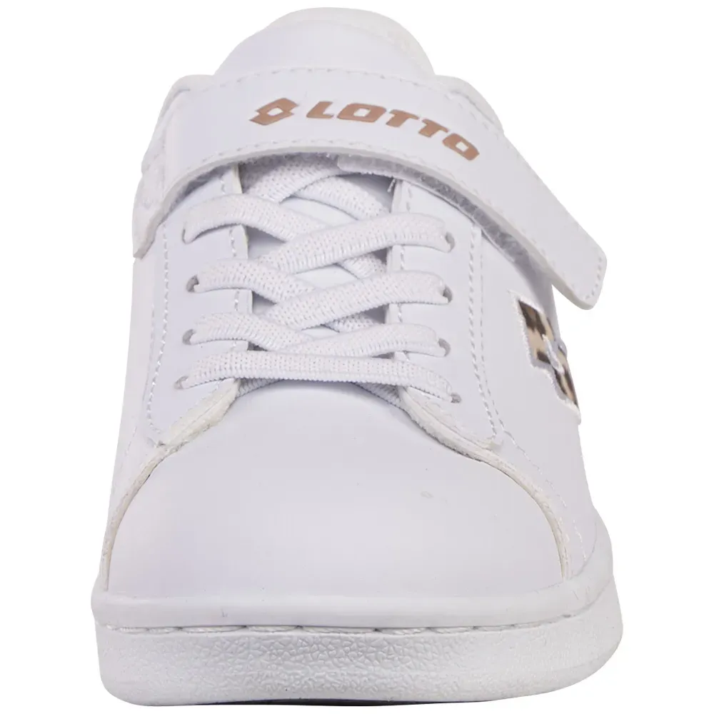 Чистые кроссовки в модном теннисном ретро-дизайне для самых маленьких. Эта детская обувь для отдыха, изготовленная на специальной колодке, гарантирует удобную посадку по детской ноге. Сочетание эластичной шнуровки и застежки-липучки позволяет легко надевать и снимать куртку. Кроссовки Lotto также очень легко сочетать, например, с джинсами или леггинсами и рубашкой с милым принтом.