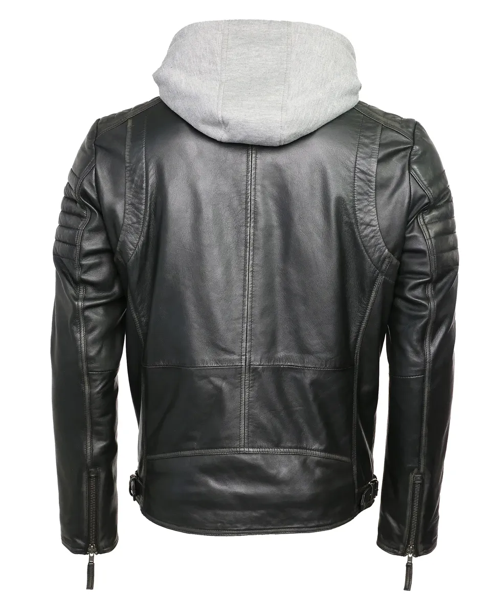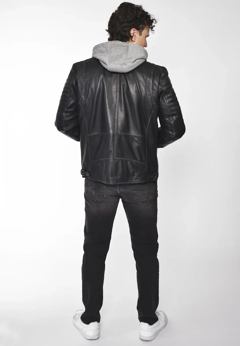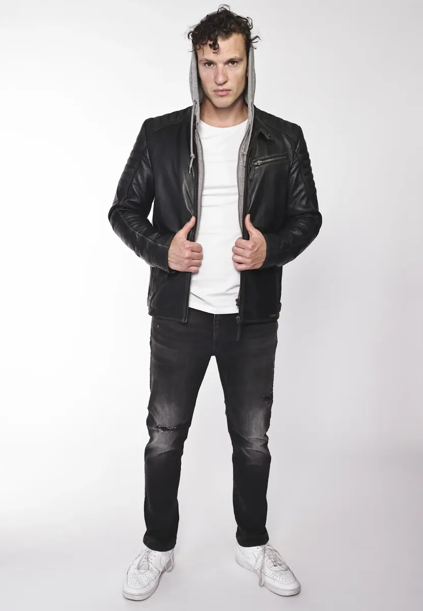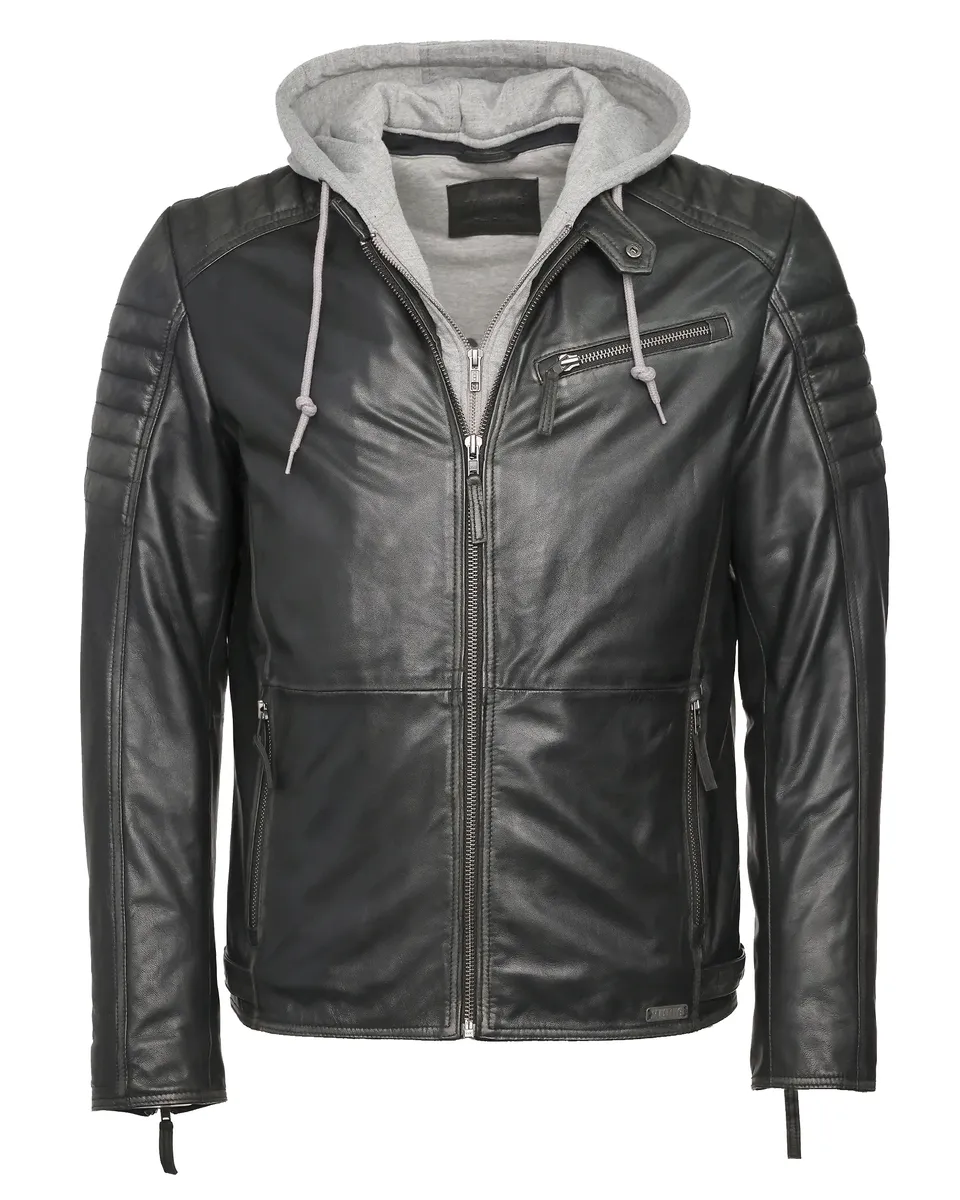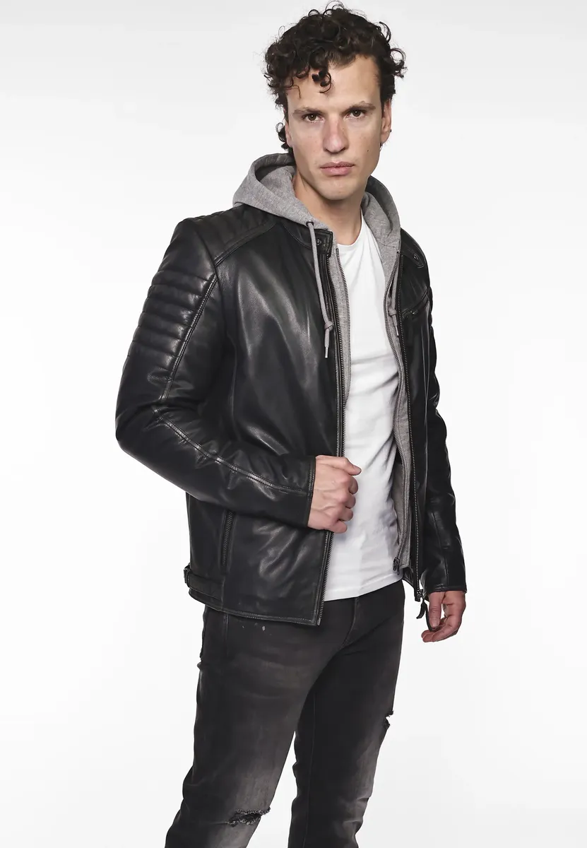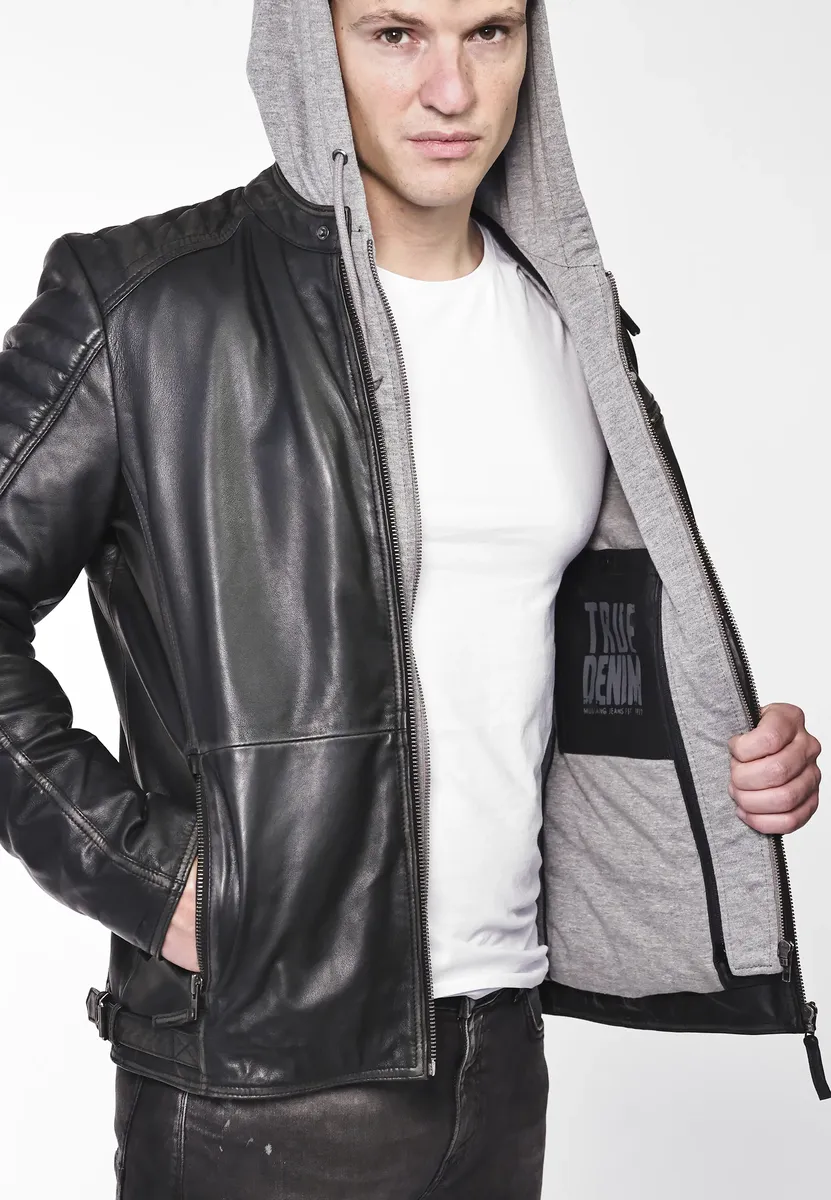 Кожаная куртка с круглым воротником от модного бренда Mustang.