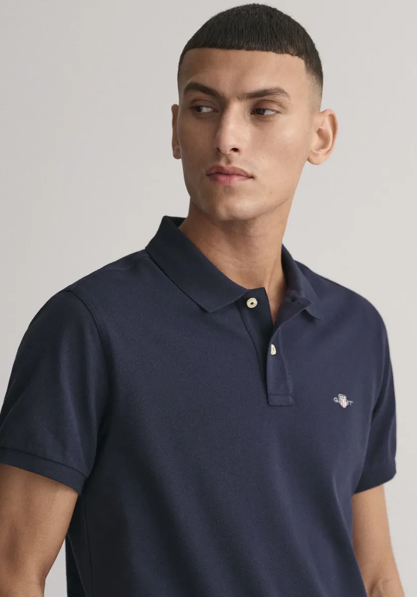 Стильная рубашка-поло Gant Slim Original Pique из 100% хлопка с вышитым логотипом. Приталенный крой, короткие рукава и элегантный вырез с планкой на пуговицах. Доступна в больших размерах.