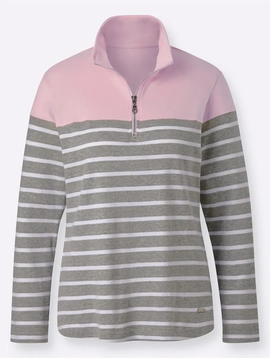 Спортивный образ с цветными акцентами: эта толстовка из стабильного по размеру интерлока с полосатым узором впечатляет всех вокруг. Благодаря застежке-молнии его можно носить как с отложным воротником, так и с воротником-стойкой. Длинные рукава. 78% хлопок, 13% модал. Однотонный: 50 % хлопок, 50 % модал. Машинная стирка.