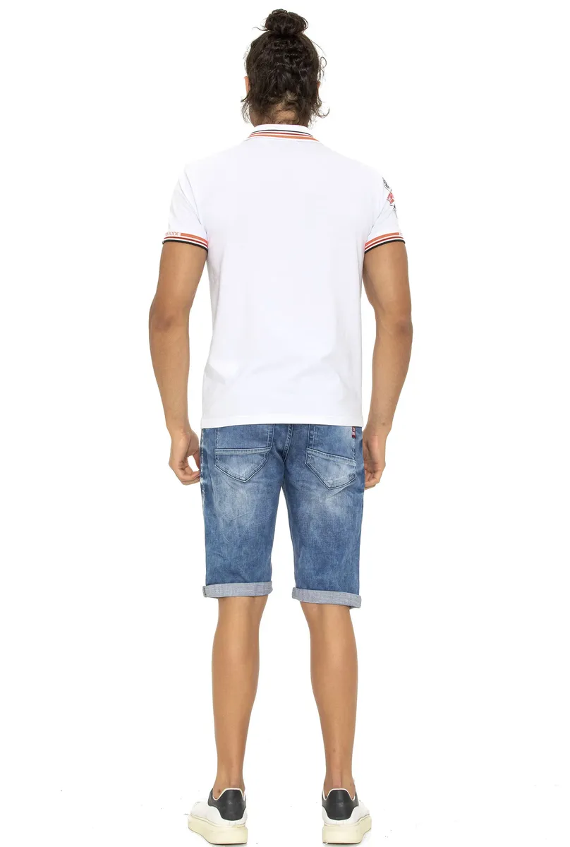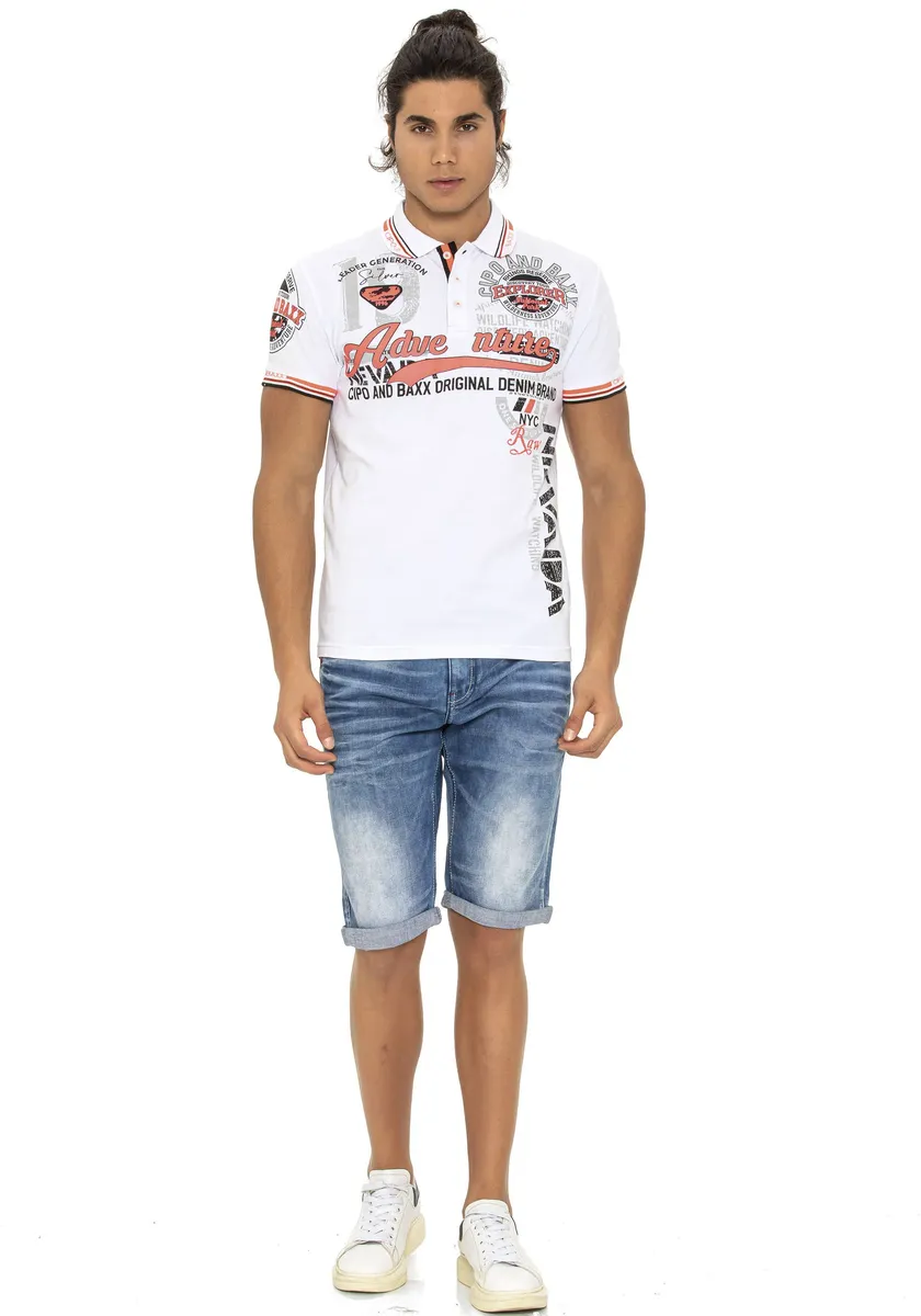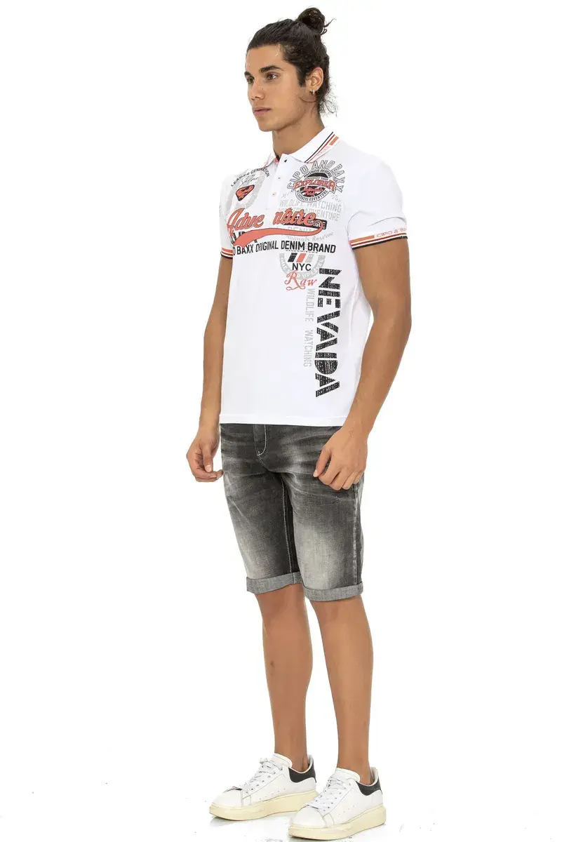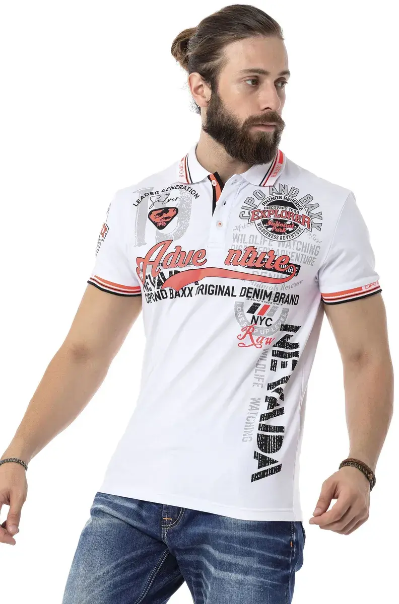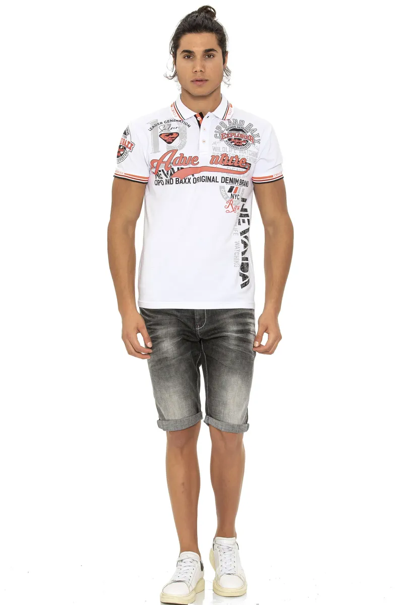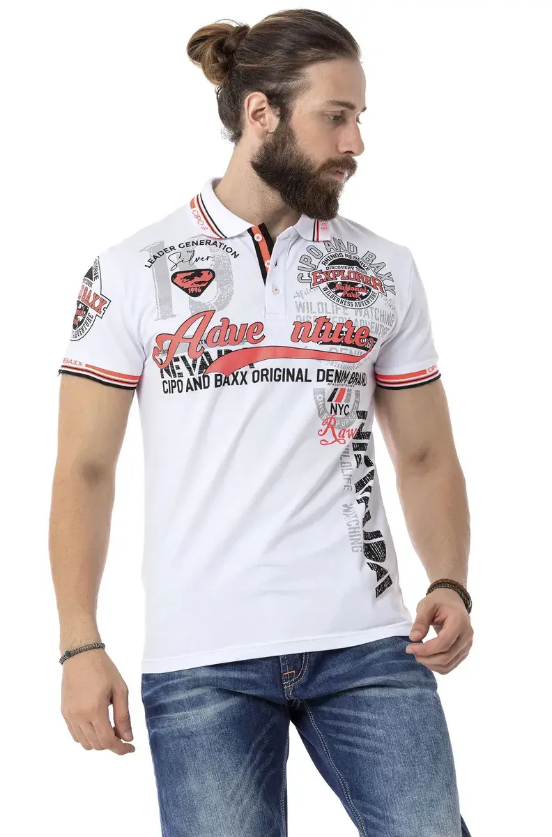 Модная мужская рубашка-поло от Cipo & Baxx. С приталенным кроем. Рубашка также имеет три пуговицы. Есть крутой принт. Мягко ниспадающий топ благодаря эластичному и эластичному одинарному трикотажу.
