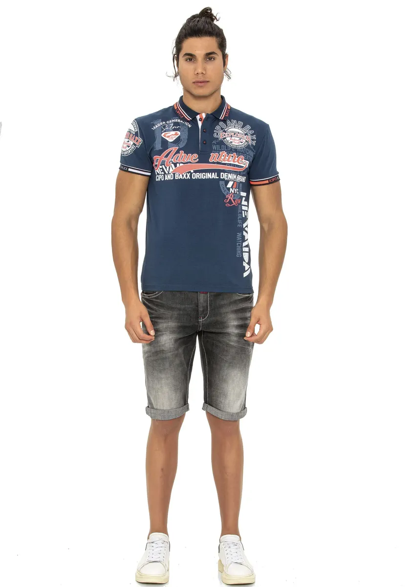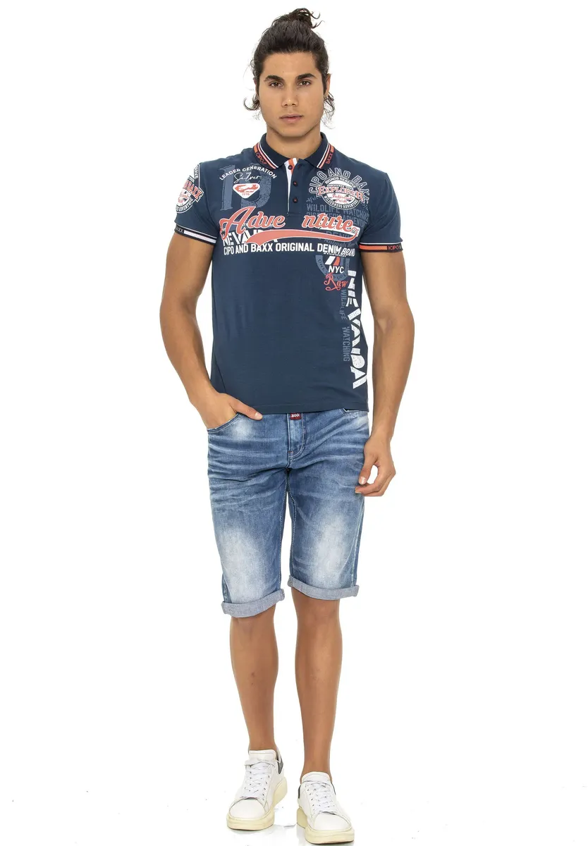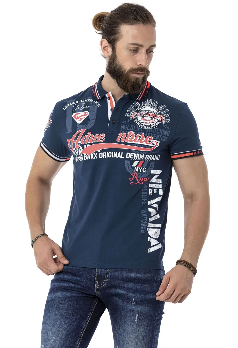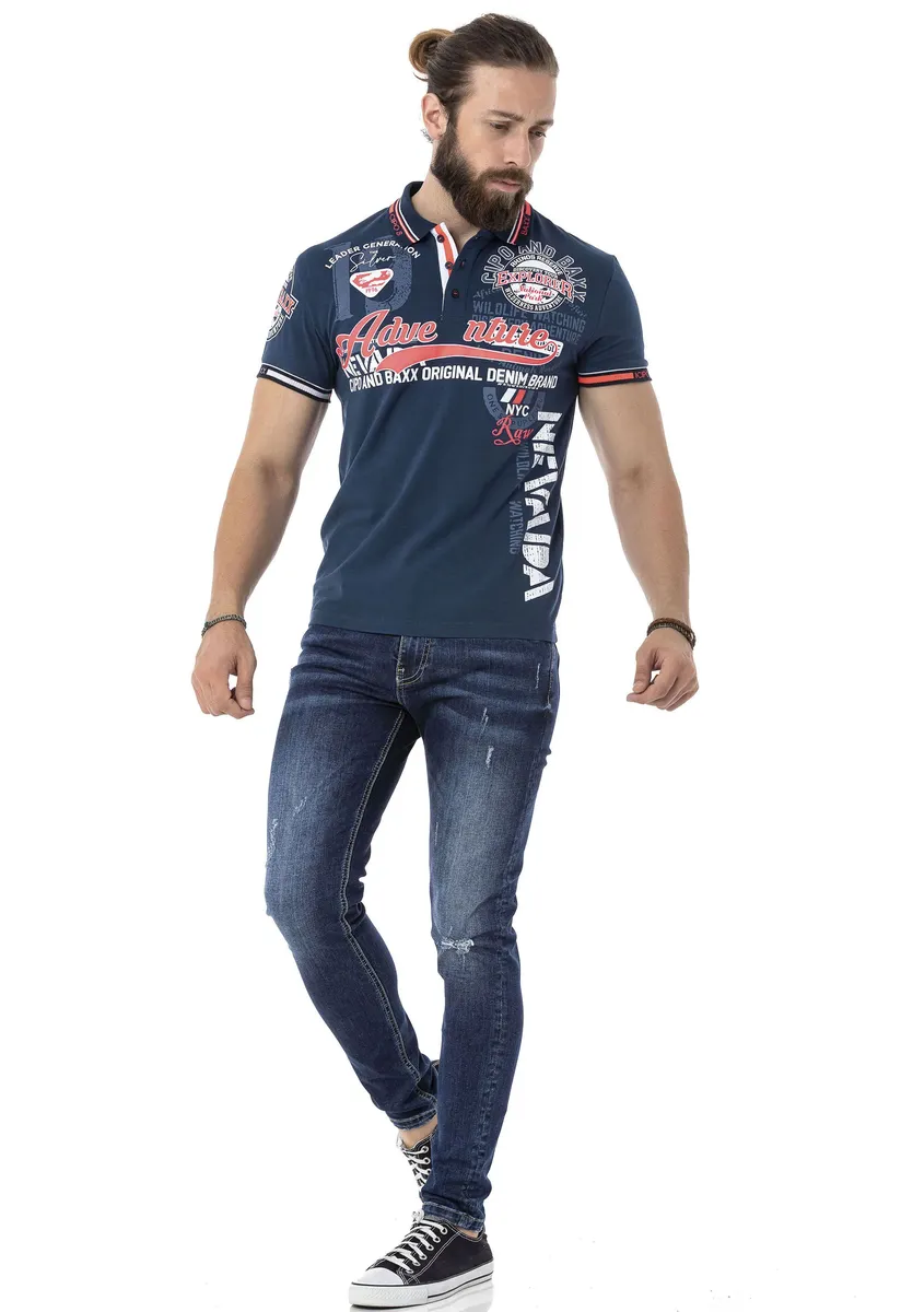 Модная мужская рубашка-поло от Cipo & Baxx. С приталенным кроем. Рубашка также имеет три пуговицы. Есть крутой принт. Мягко ниспадающий топ благодаря эластичному и эластичному одинарному трикотажу.