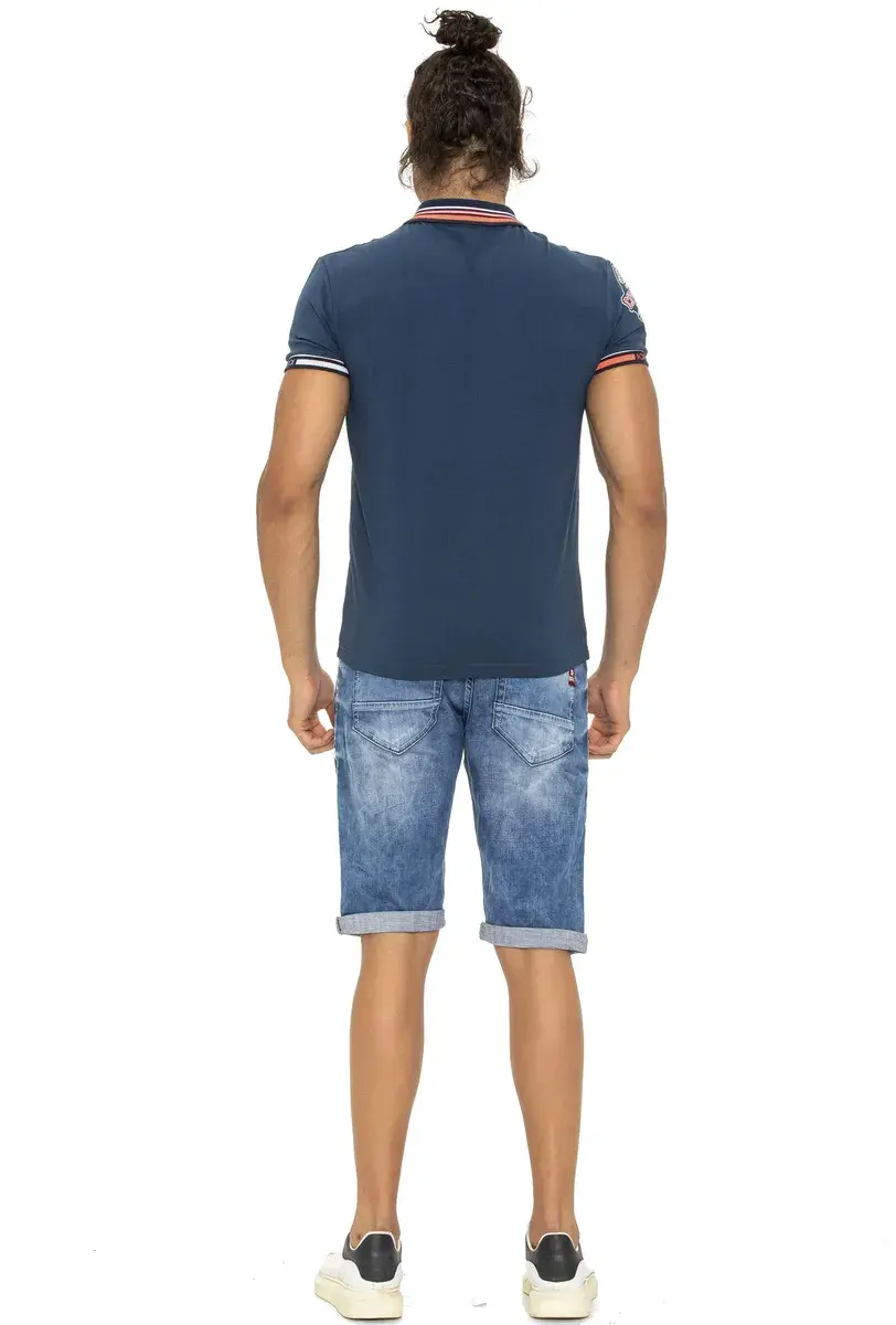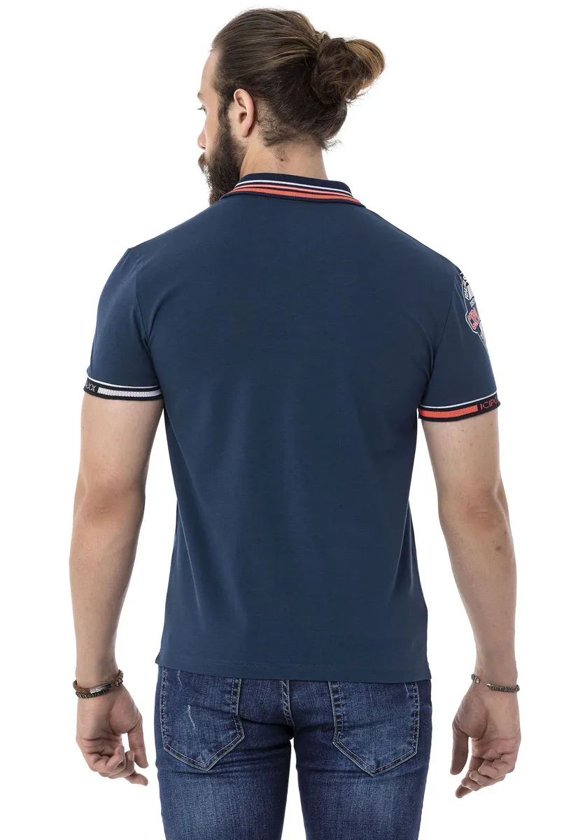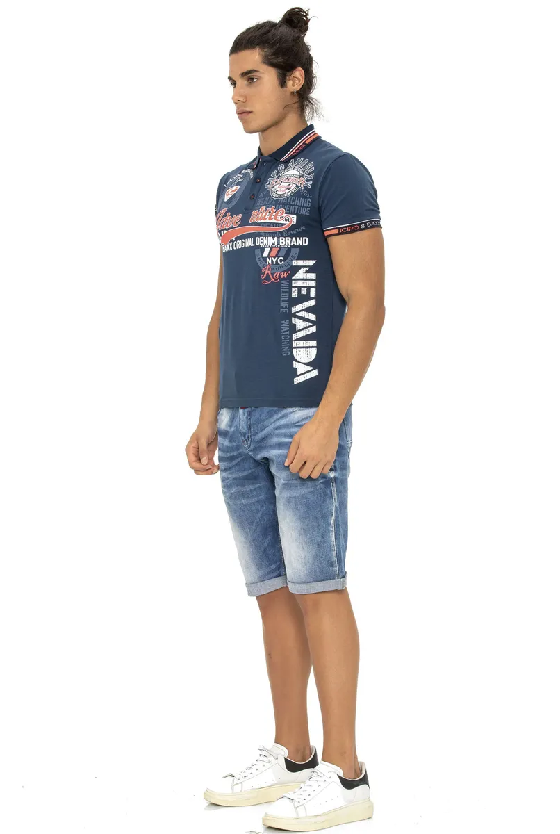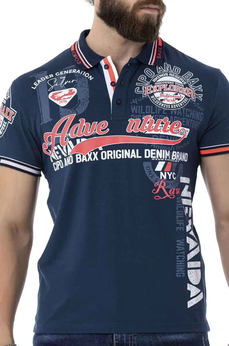 Модная мужская рубашка-поло от Cipo & Baxx. С приталенным кроем. Рубашка также имеет три пуговицы. Есть крутой принт. Мягко ниспадающий топ благодаря эластичному и эластичному одинарному трикотажу.