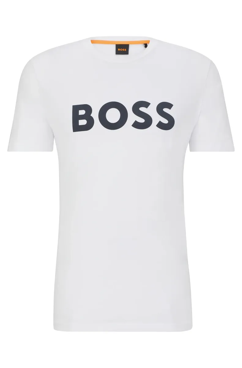 Футболка BOSS ORANGE "Thinking 1" с крупным принтом BOSS на груди, белый